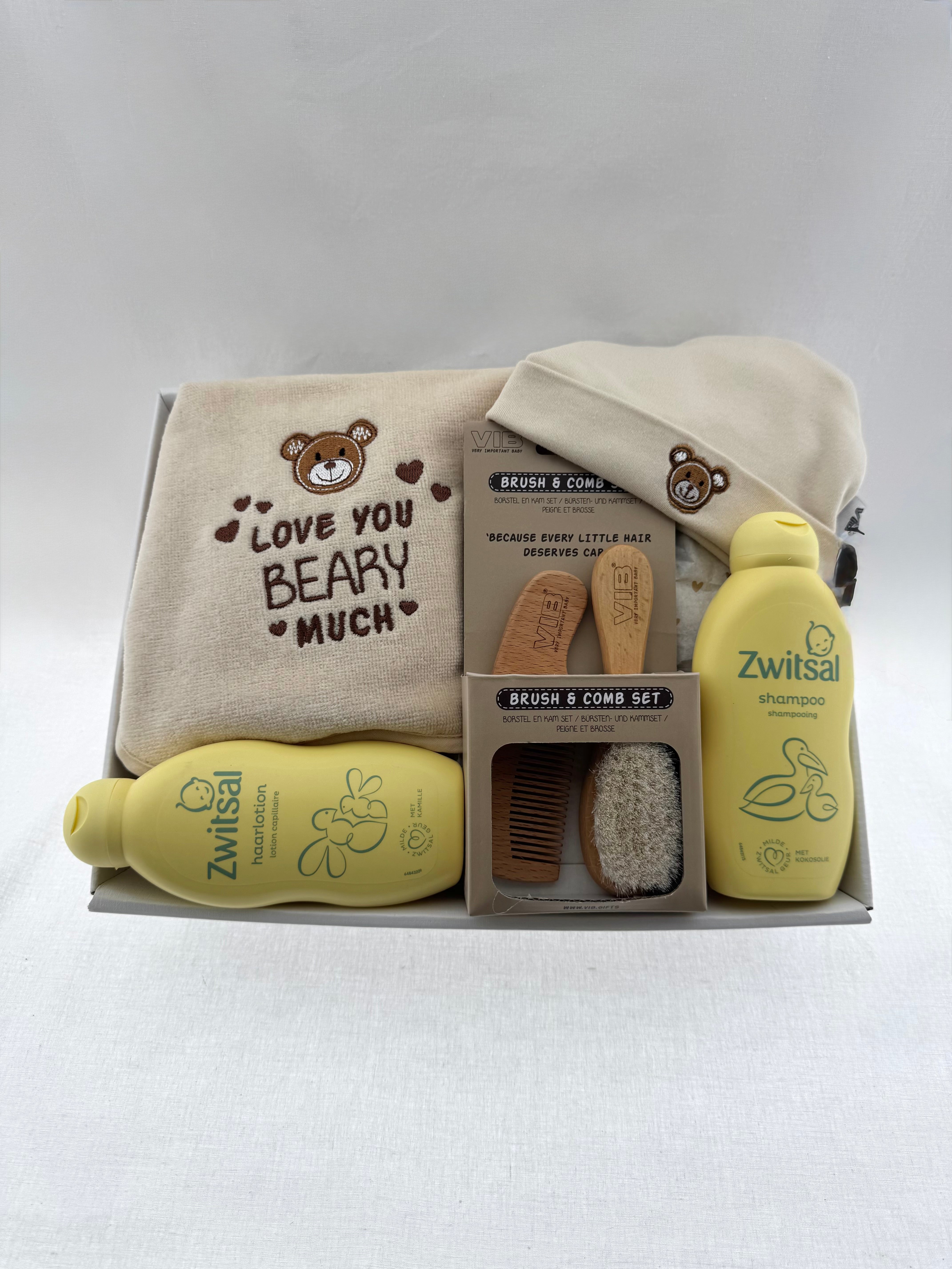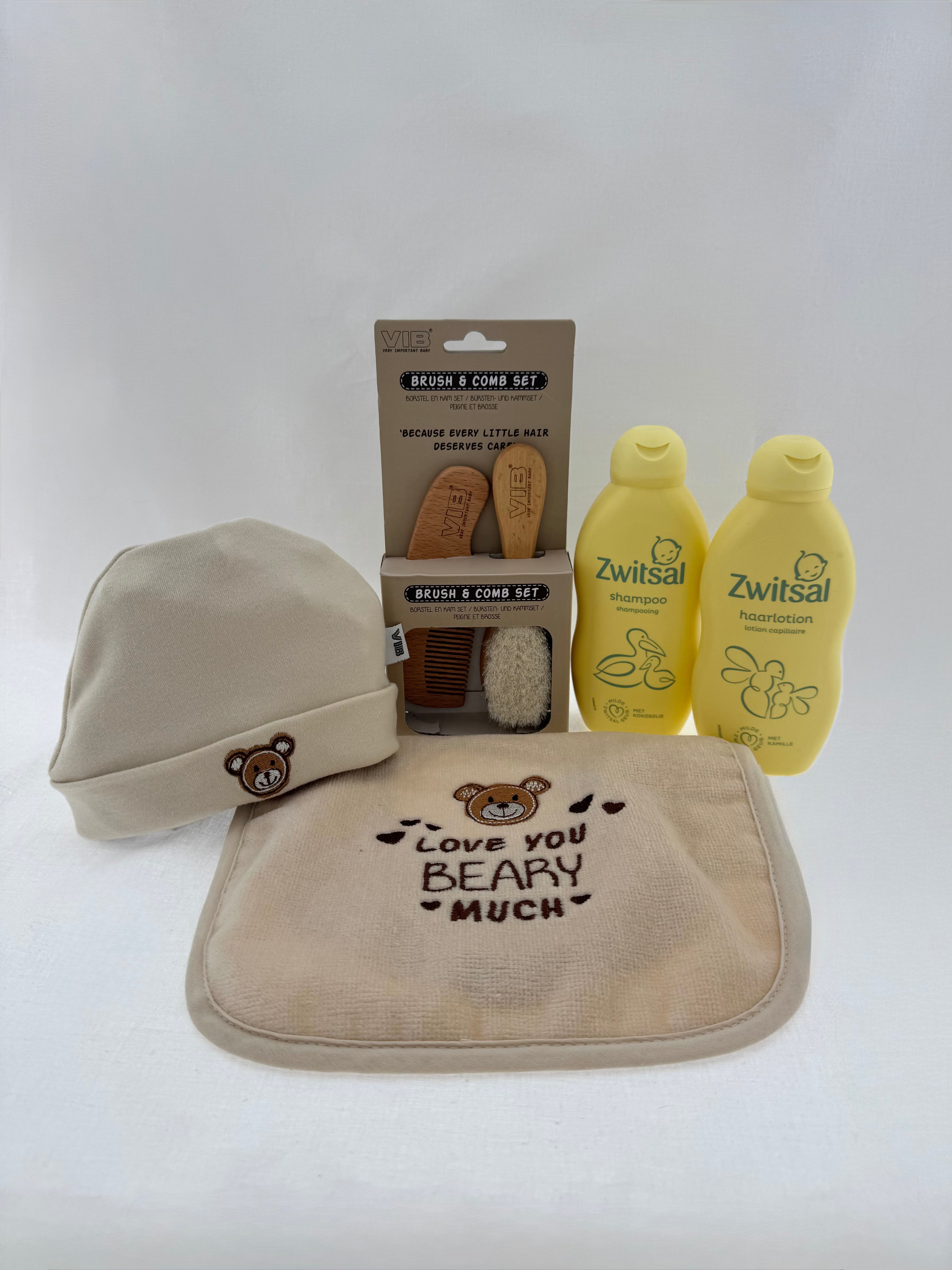 Dit liefdevolle babycadeaupakket in VIB Beige is een mooie mix van zachte accessoires en dagelijkse verzorging. Perfect als kraamcadeau of babyshower verrassing: alles is op elkaar afgestemd in rustige tinten en direct handig voor de eerste maanden. De verzorgingsproducten van Zwitsal maken van de dagelijkse routine een fijn verwenmoment met die herkenbare, vertrouwde geur.