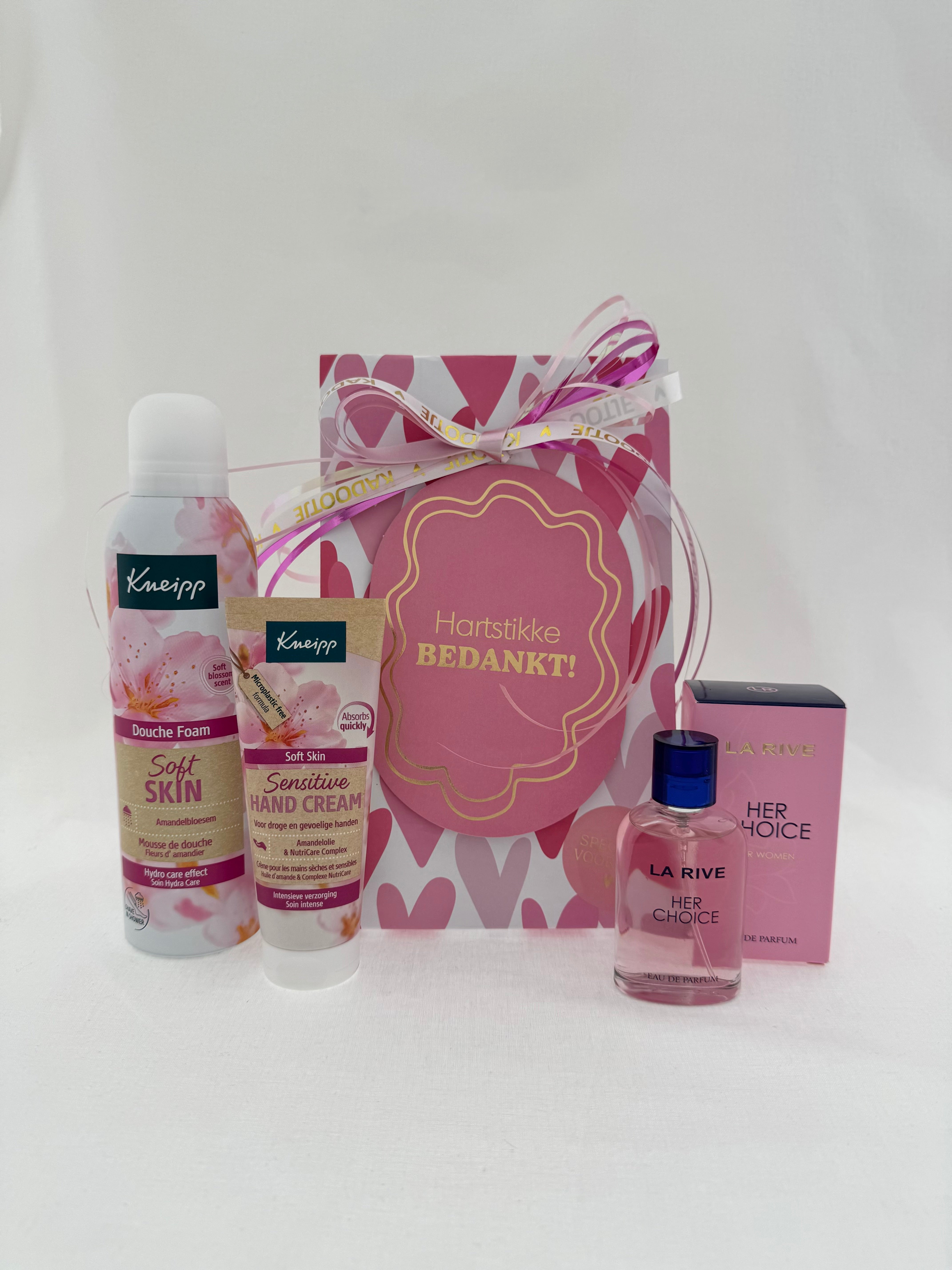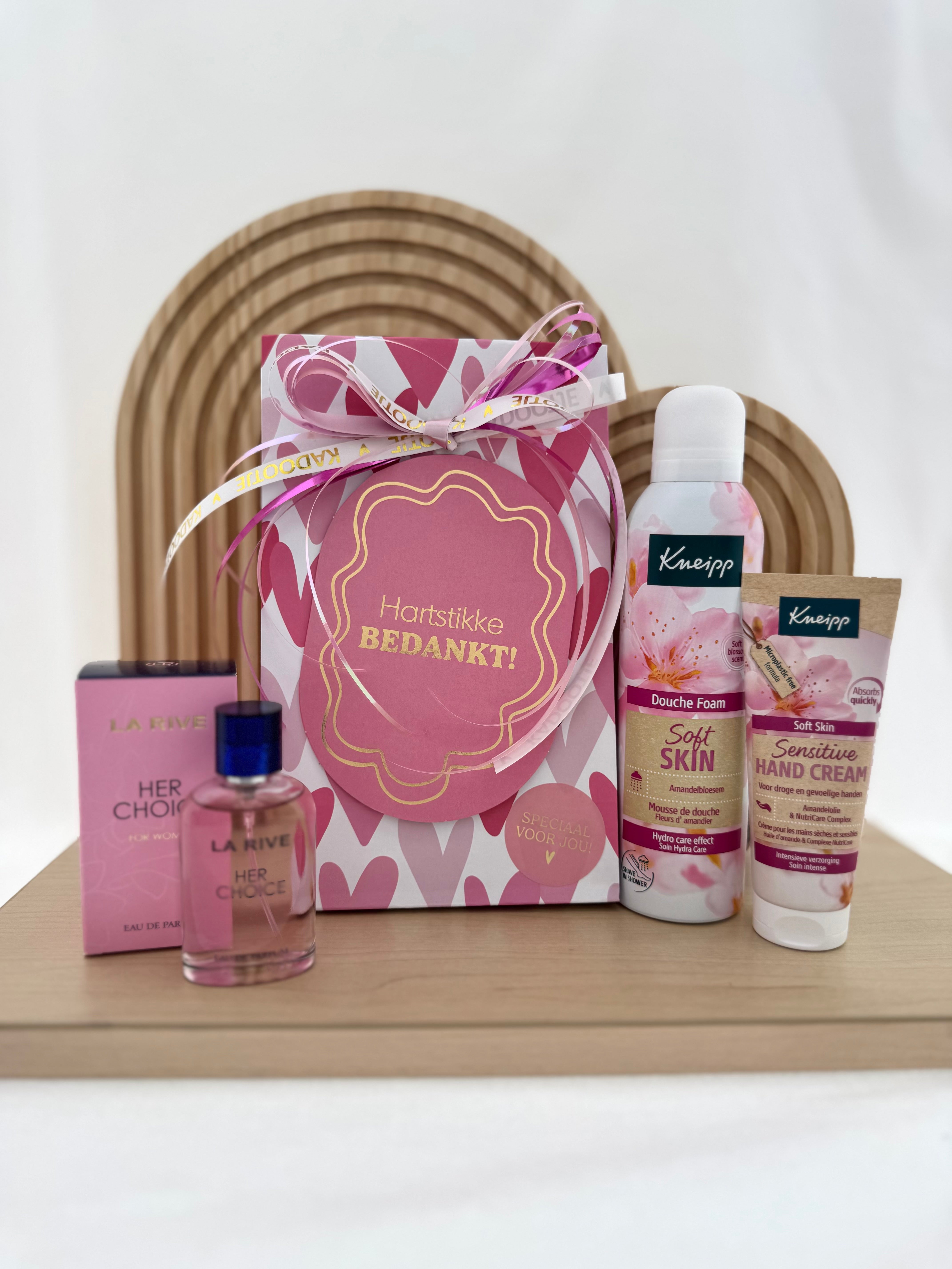 Dit pakket is perfect als verwenmoment voor een bedankje! De zachte geur en de huidvriendelijke producten maken het geschikt voor vrijwel alle huidtypes, inclusief de gevoelige huid.
