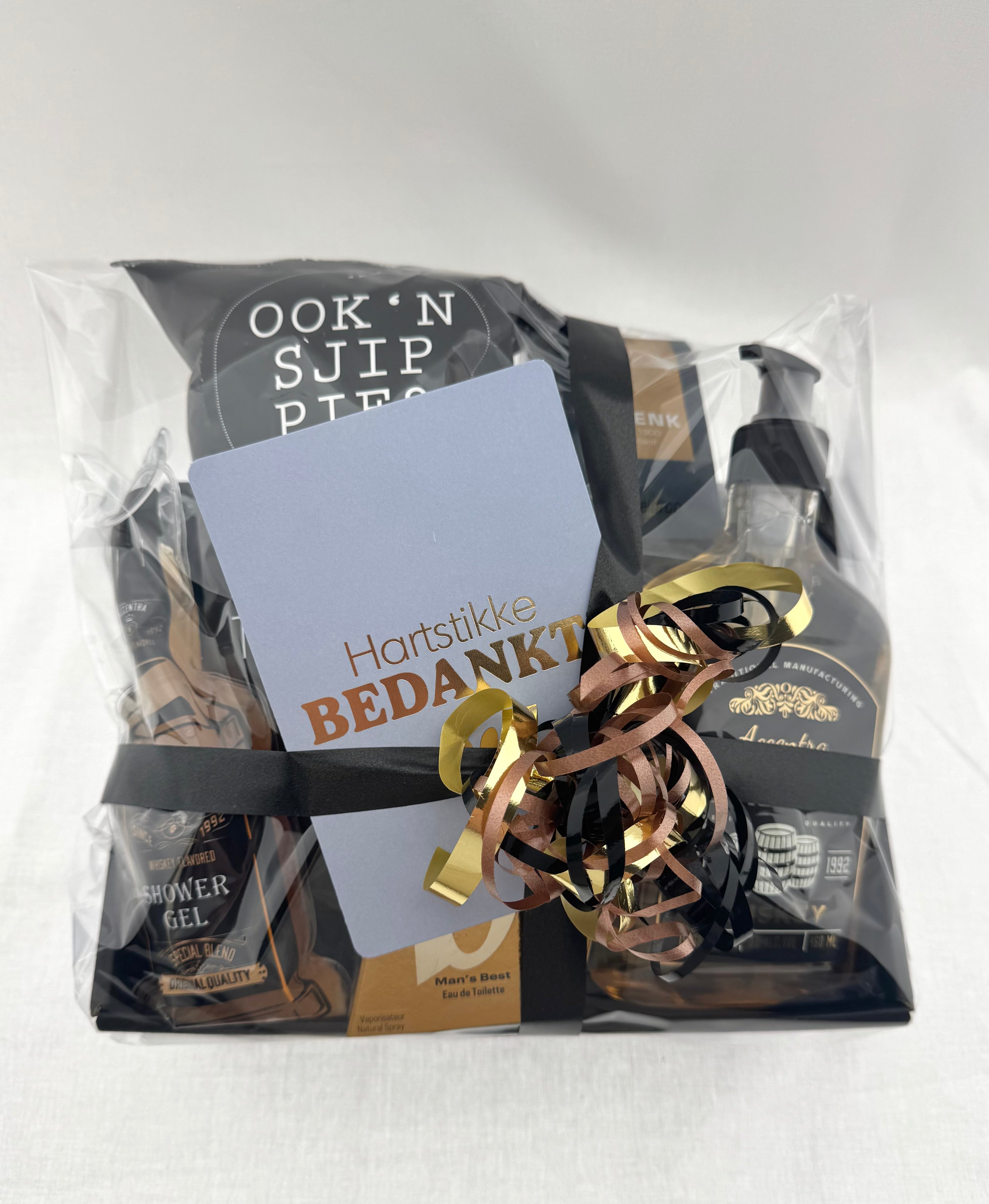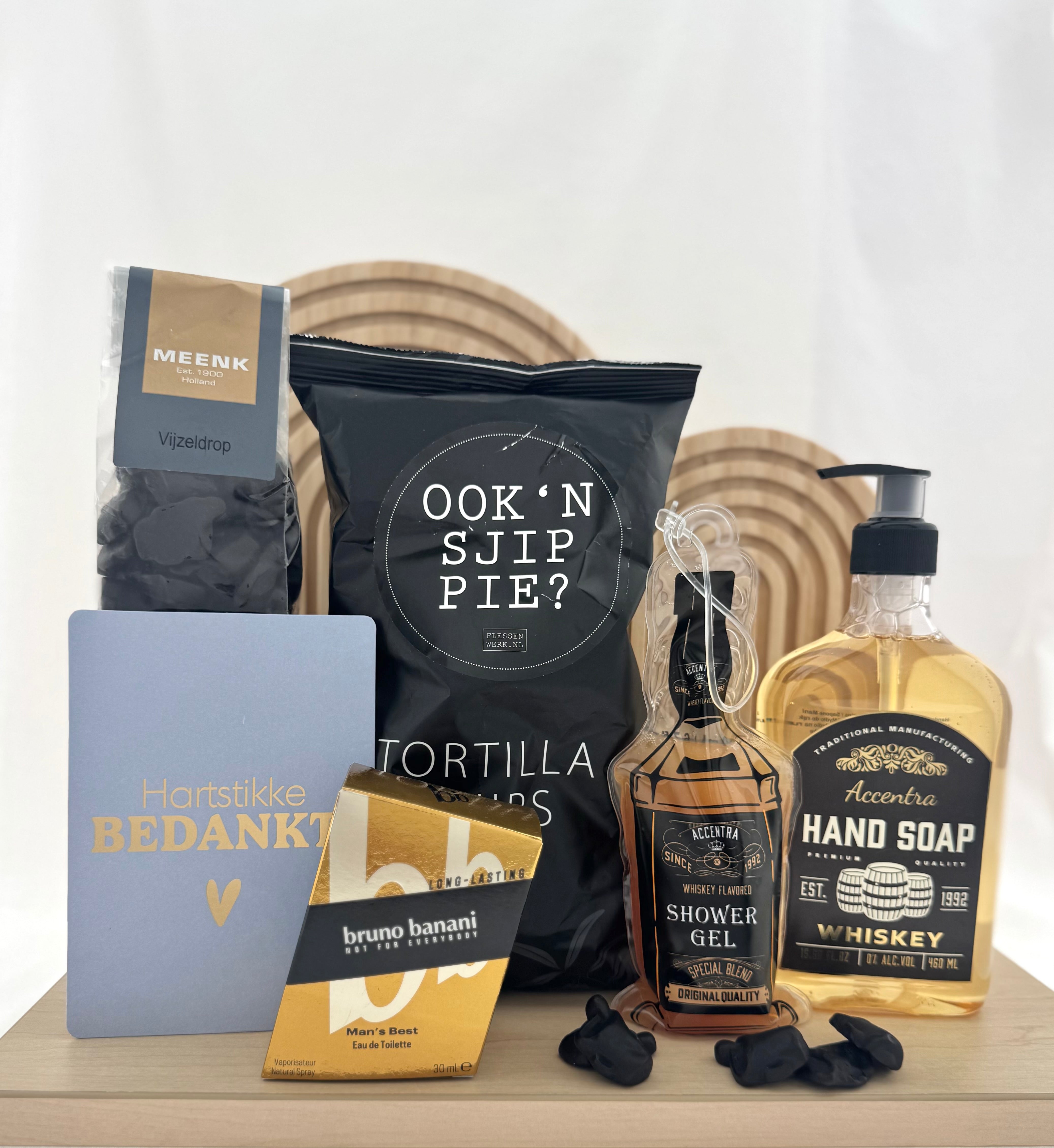 Een stoer en stijlvol cadeaupakket voor de moderne man. Dit pakket combineert een vleugje humor met een robuuste uitstraling!
