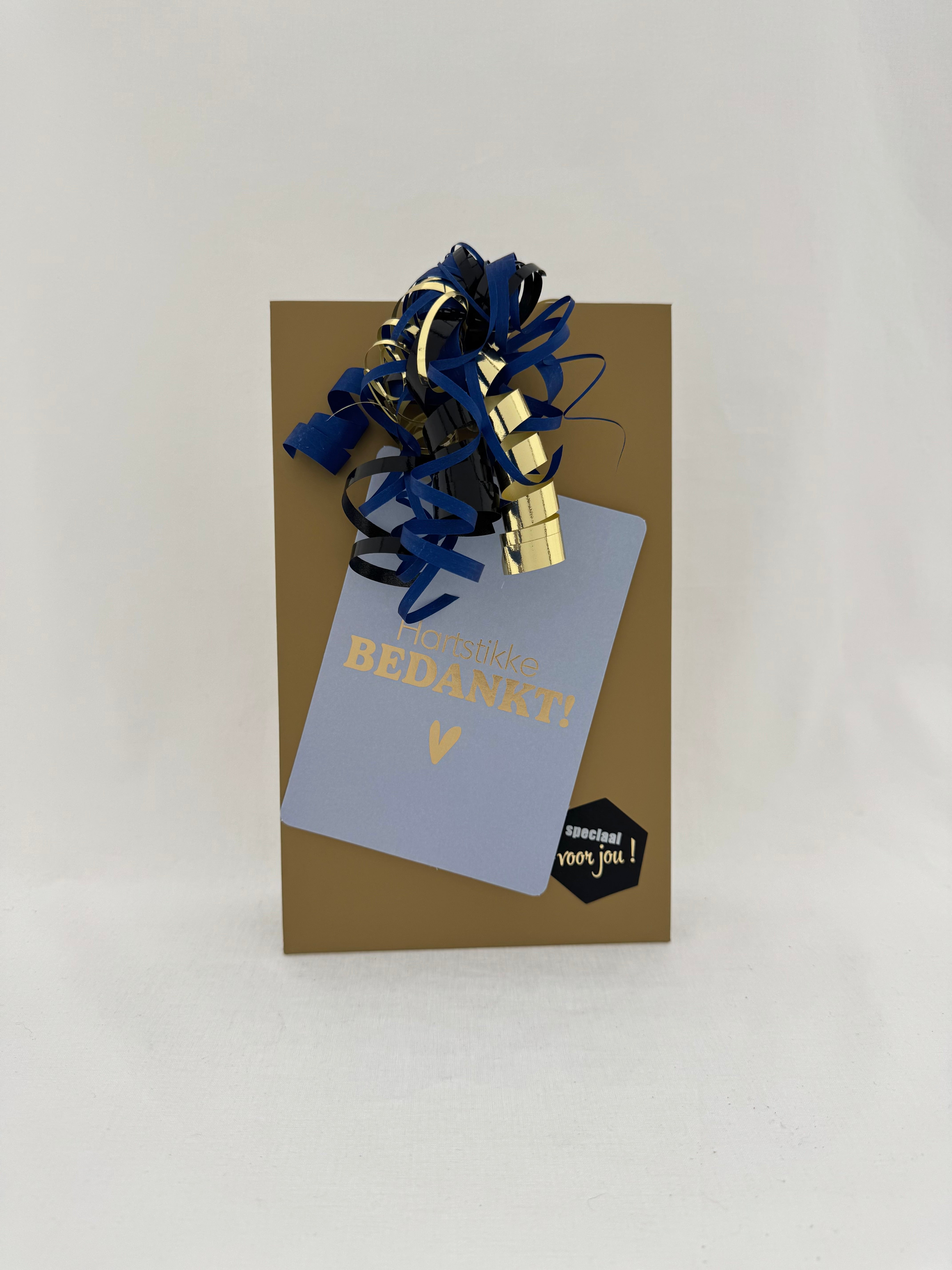 ❥ Geschenkverpakking: luxe goudkleurige geschenkdoos met blauw-gouden linten