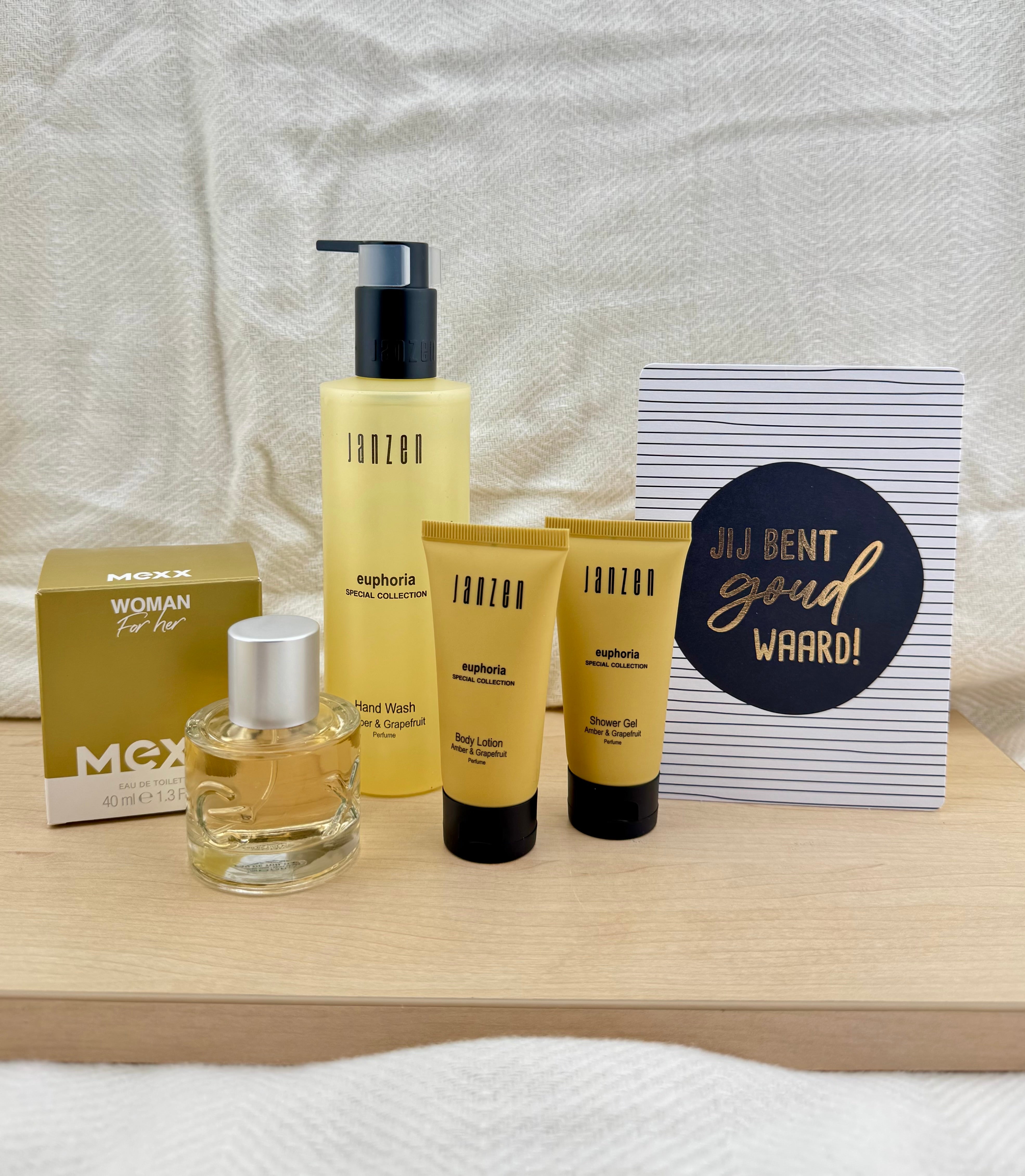 Dit gouden pakket straalt luxe, verzorging en waardering uit – een prachtig cadeau om jouw secretaresse op deze speciale dag in het zonnetje te zetten! ✨💛