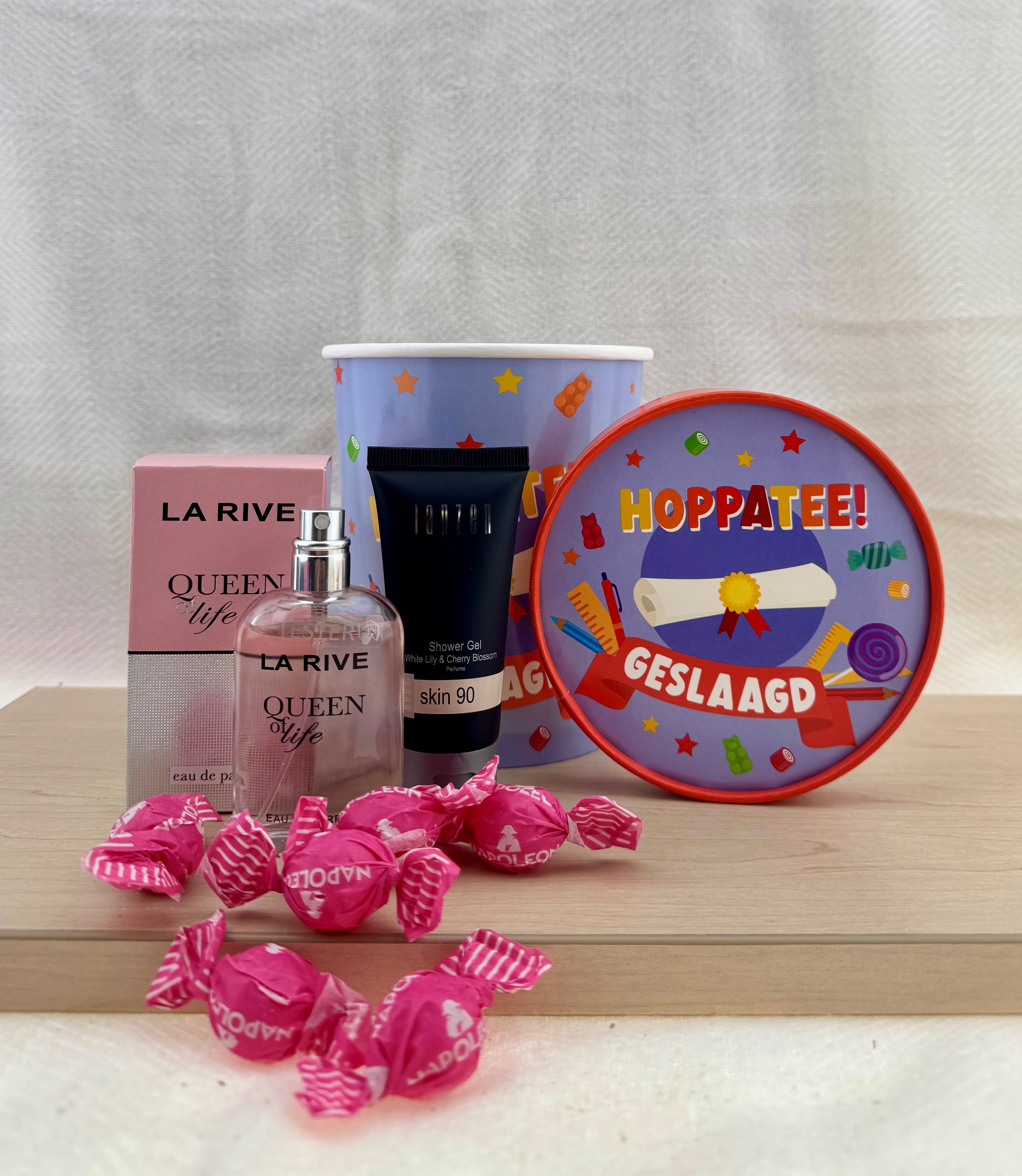 Vier deze mijlpaal in stijl met een heerlijk verwenpakket speciaal voor de geslaagde! Perfect als felicitatiecadeau voor een examen, diploma of andere prestatie, een combinatie van luxe, geur en lekkers in een feestelijk jasje.