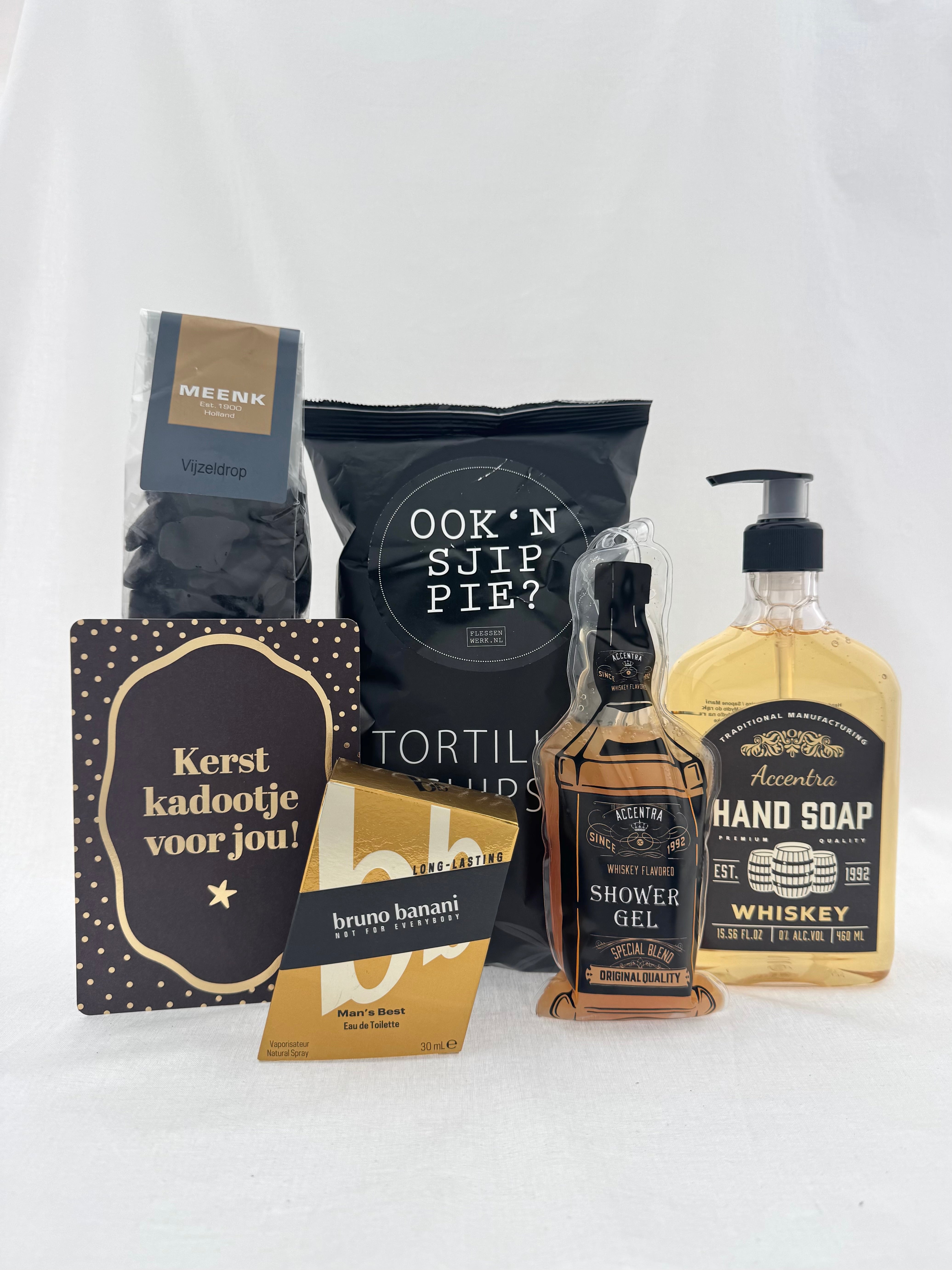 Een stoer en stijlvol cadeaupakket voor de moderne man. Dit pakket combineert een vleugje humor met een robuuste uitstraling!