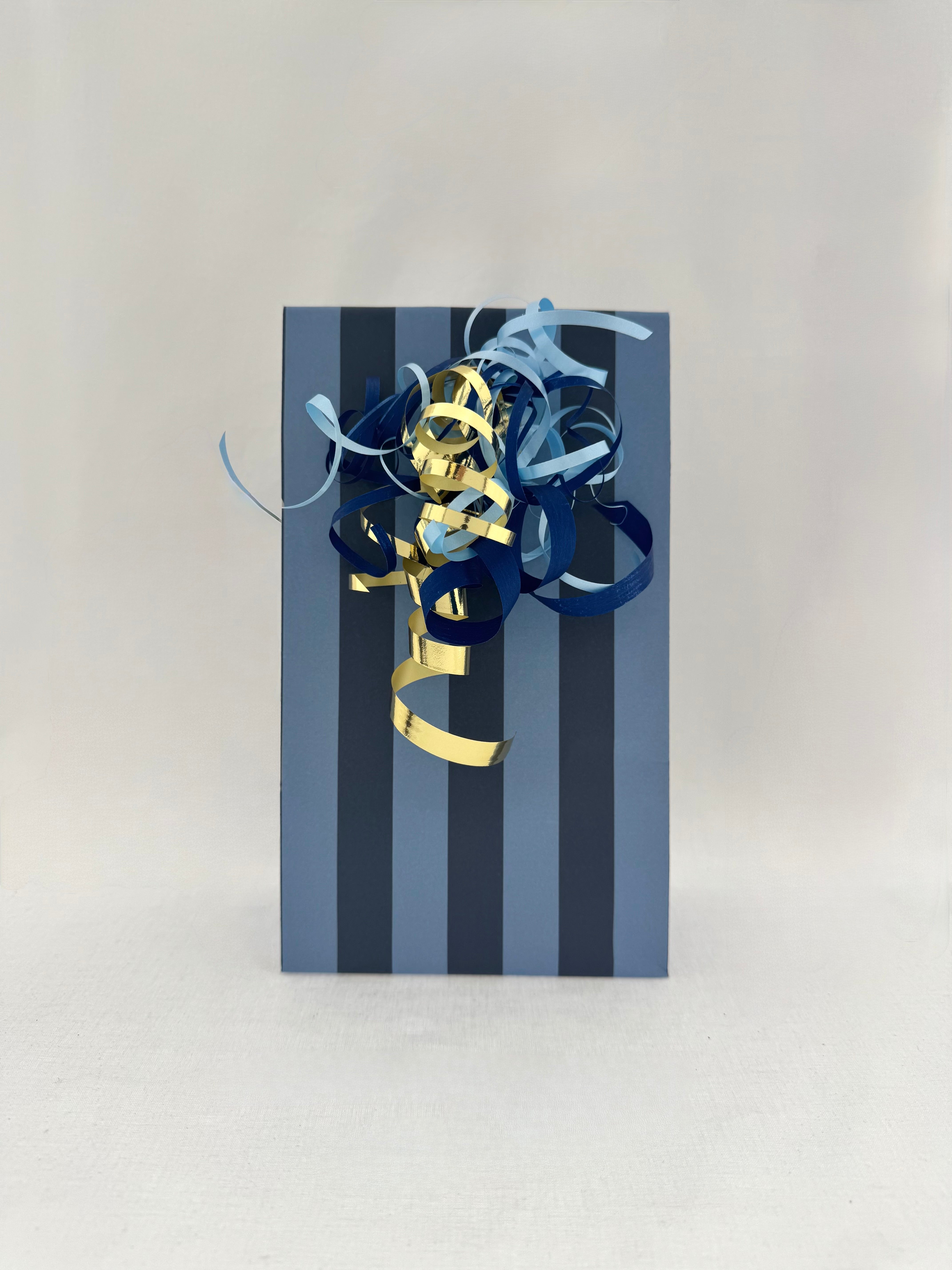 ❥ Geschenkverpakking met lint: de set is feestelijk versierd met blauw en goud krullint, direct klaar om cadeau te geven.
