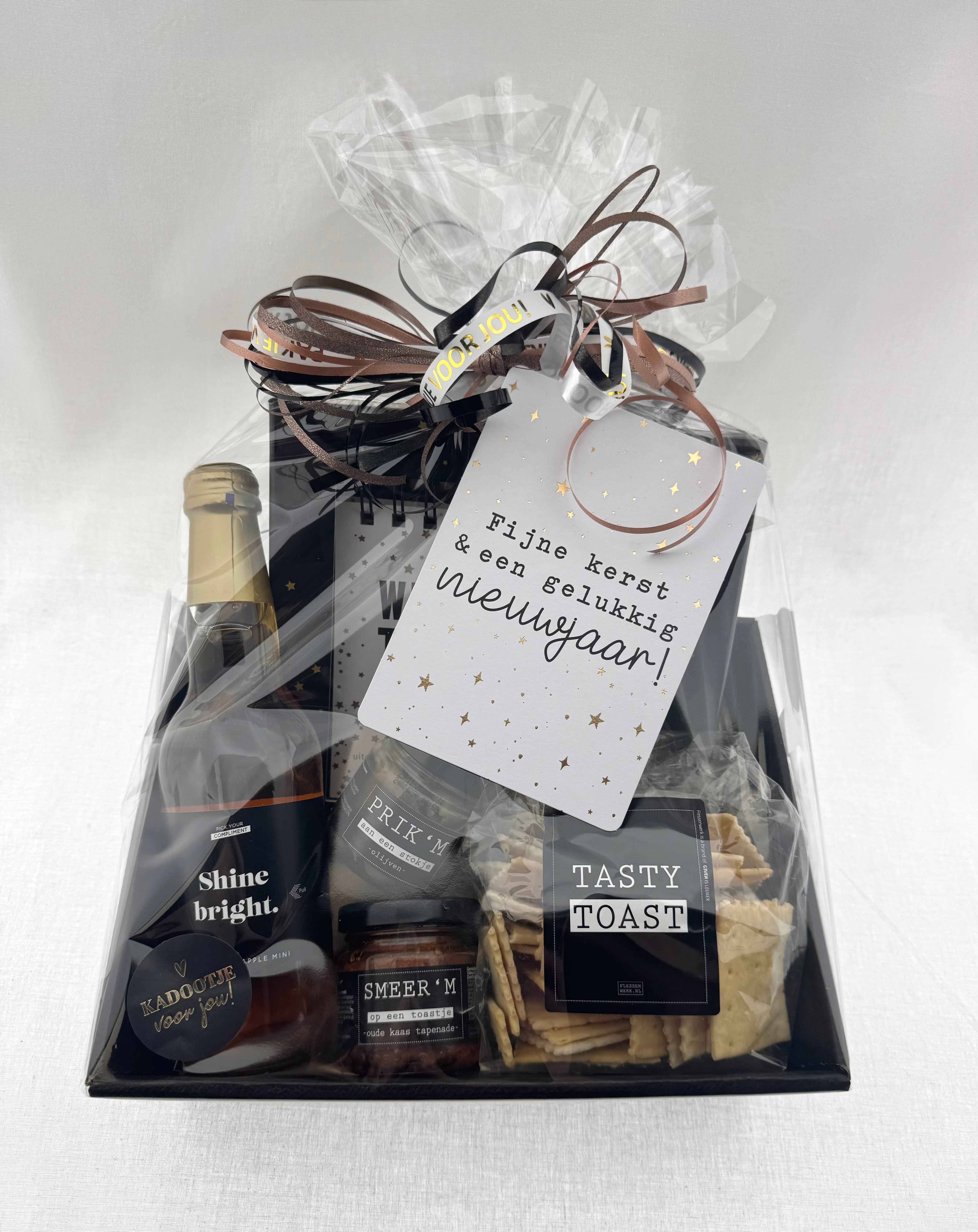 ❥ Kaartje “Fijne kerst & een gelukkig nieuwjaar!”*****: een feestelijk kaartje dat het pakket een persoonlijke en warme touch geeft.