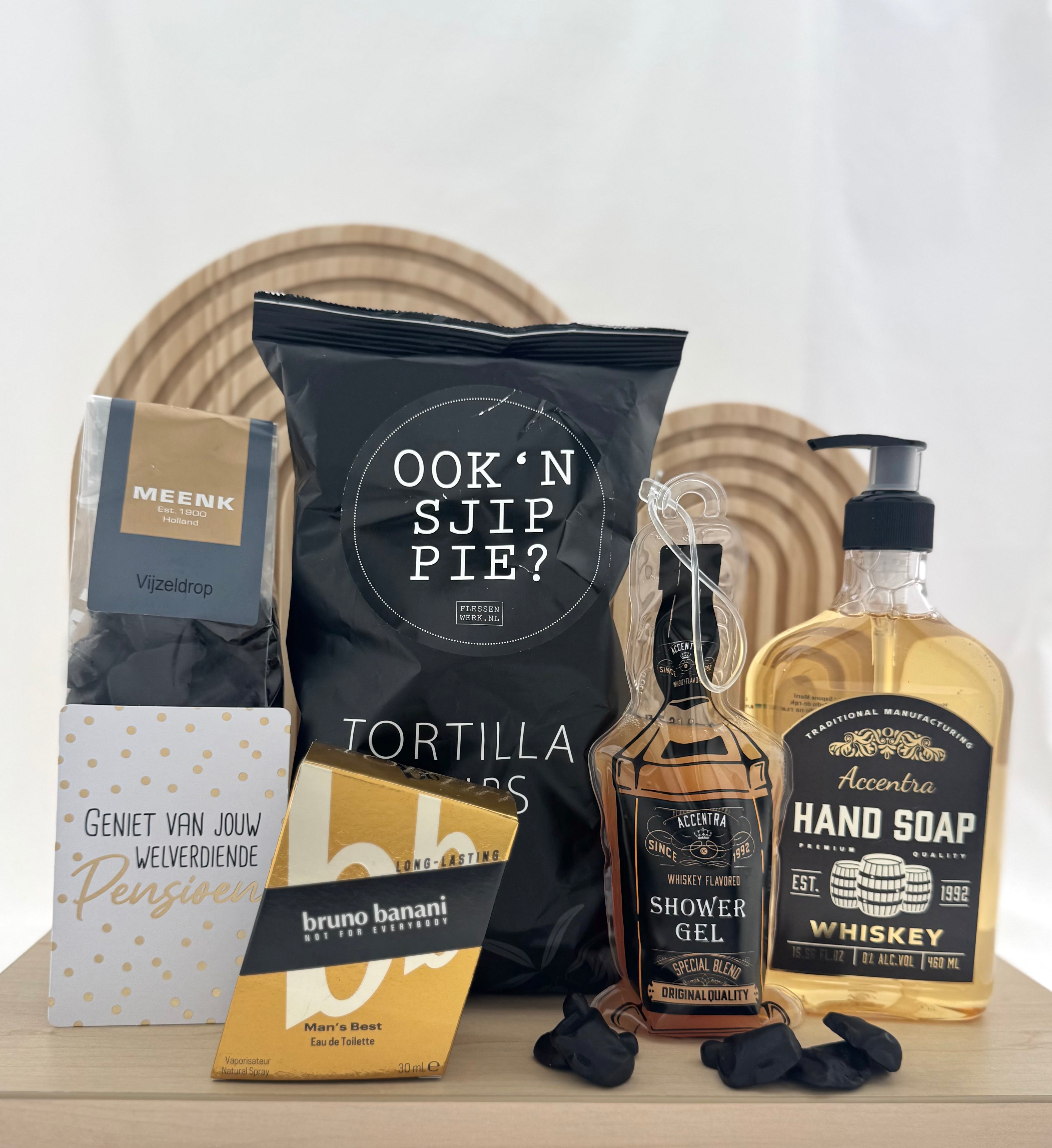 Perfect als pensioenscadeautje! Een heerlijk verwenpakket, van verzorging tot snoepmoment.