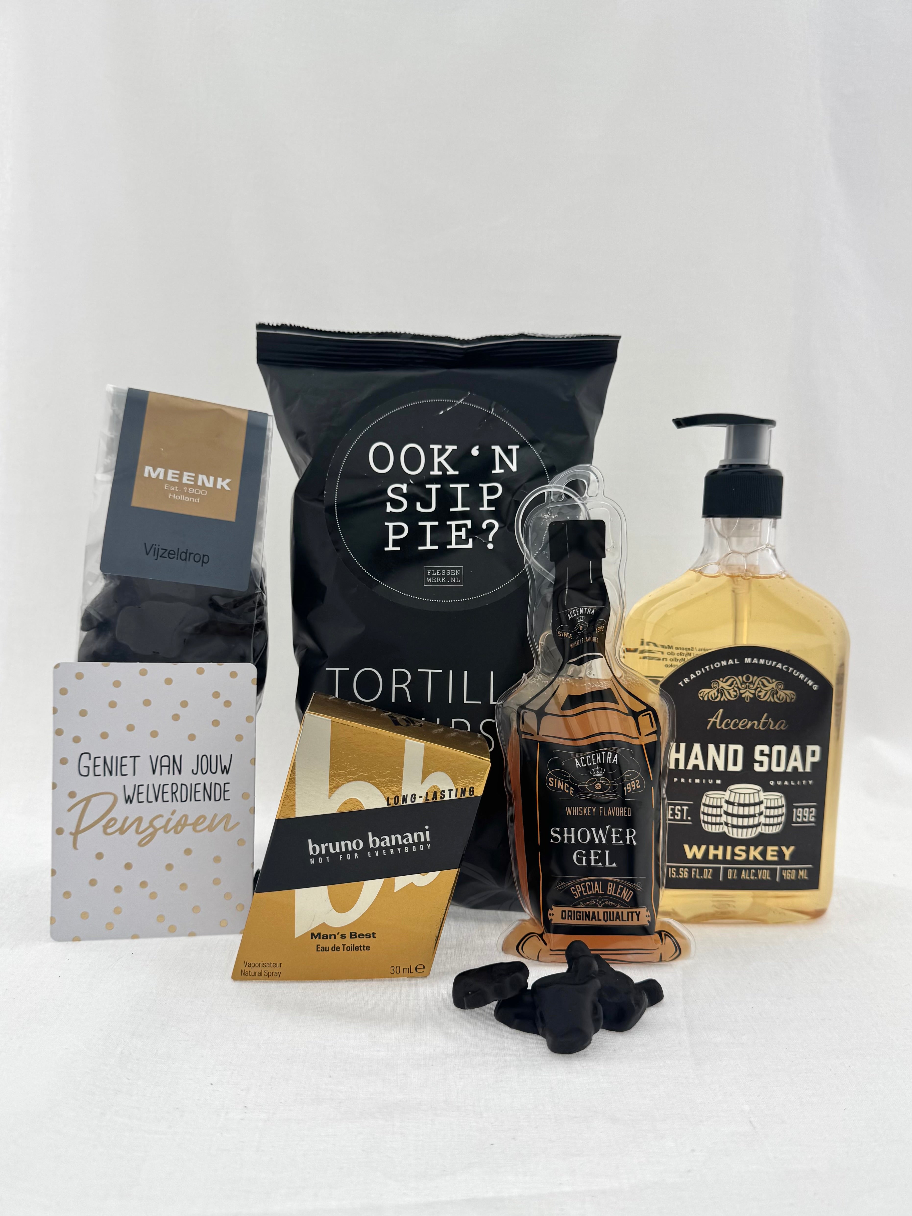 Een stoer en stijlvol cadeaupakket voor de moderne man. Dit pakket combineert een vleugje humor met een robuuste uitstraling!