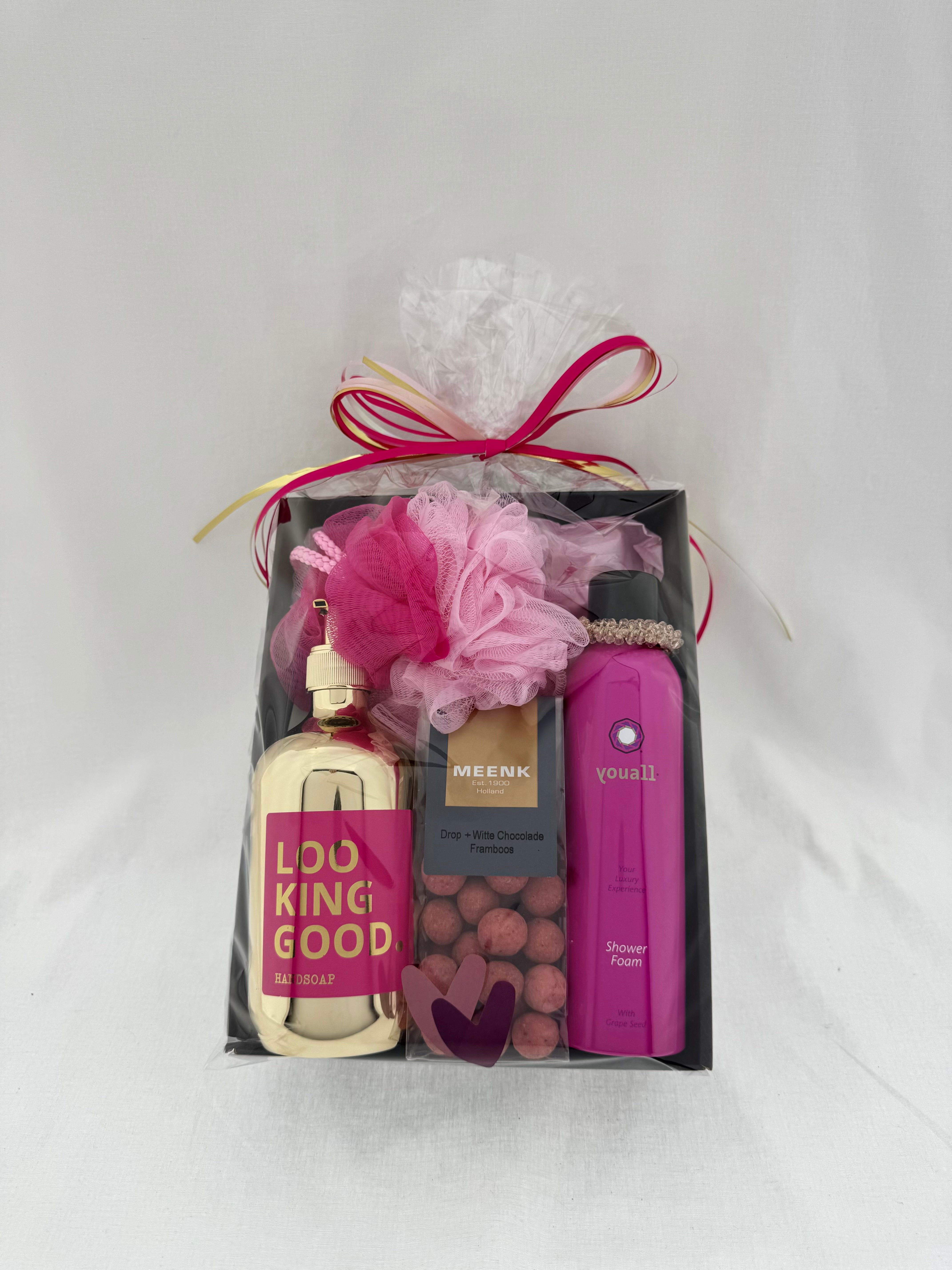 ❥ Roze Douchepuff: voor extra schuim en zachte reiniging.