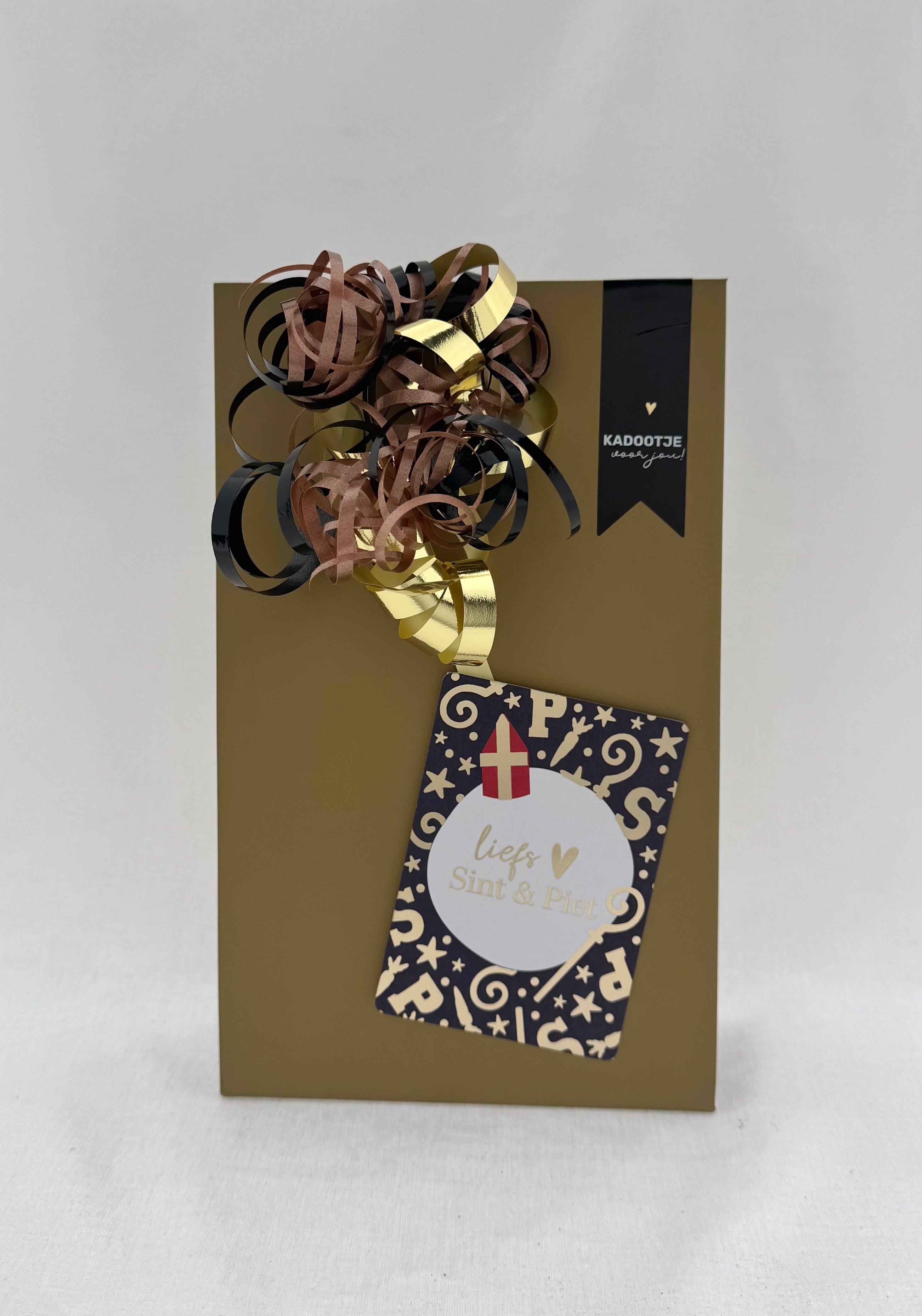 Het geheel is verpakt in een luxe goud-zwarte geschenkdoos, afgewerkt met feestelijke linten. Klaar om direct cadeau te geven.