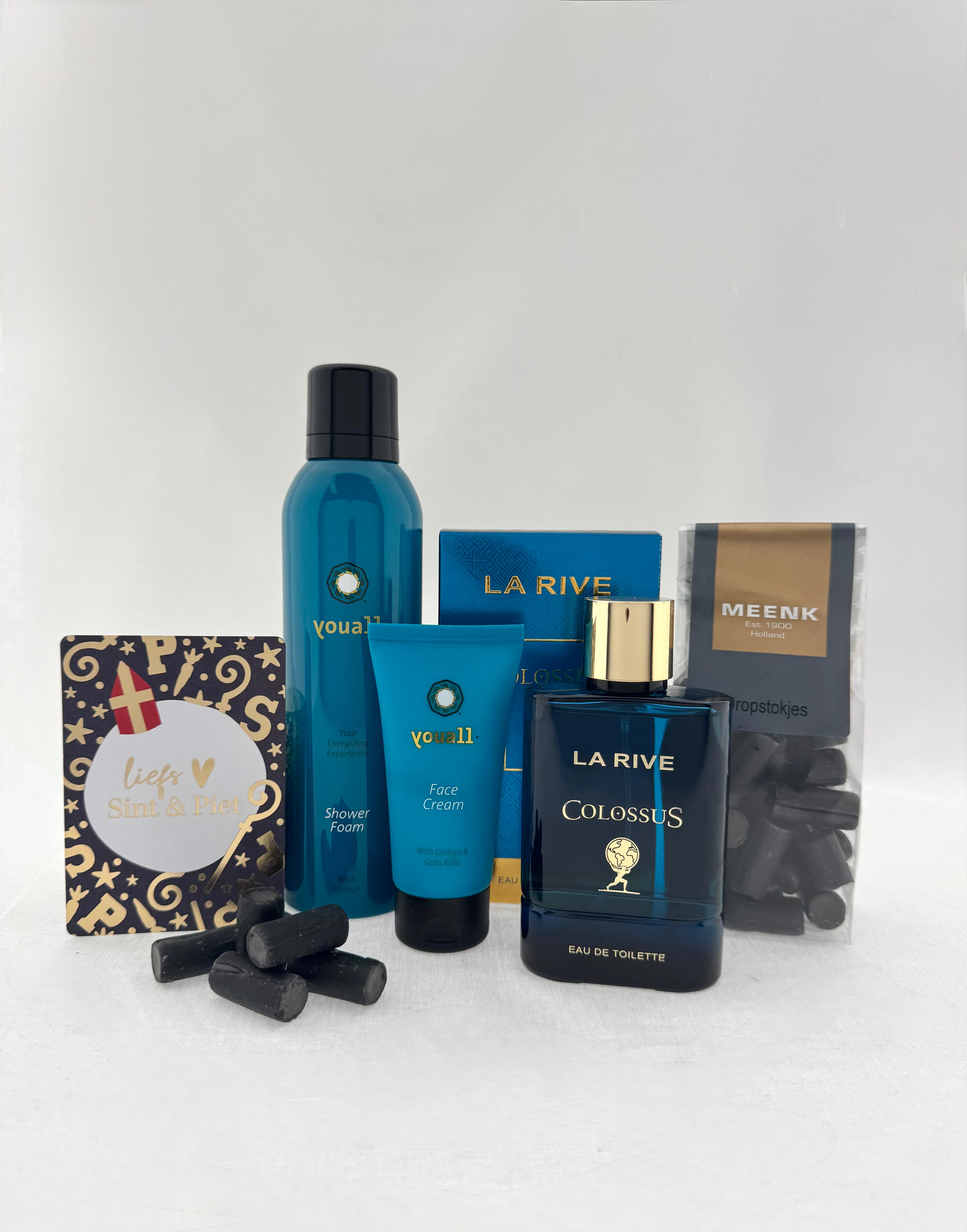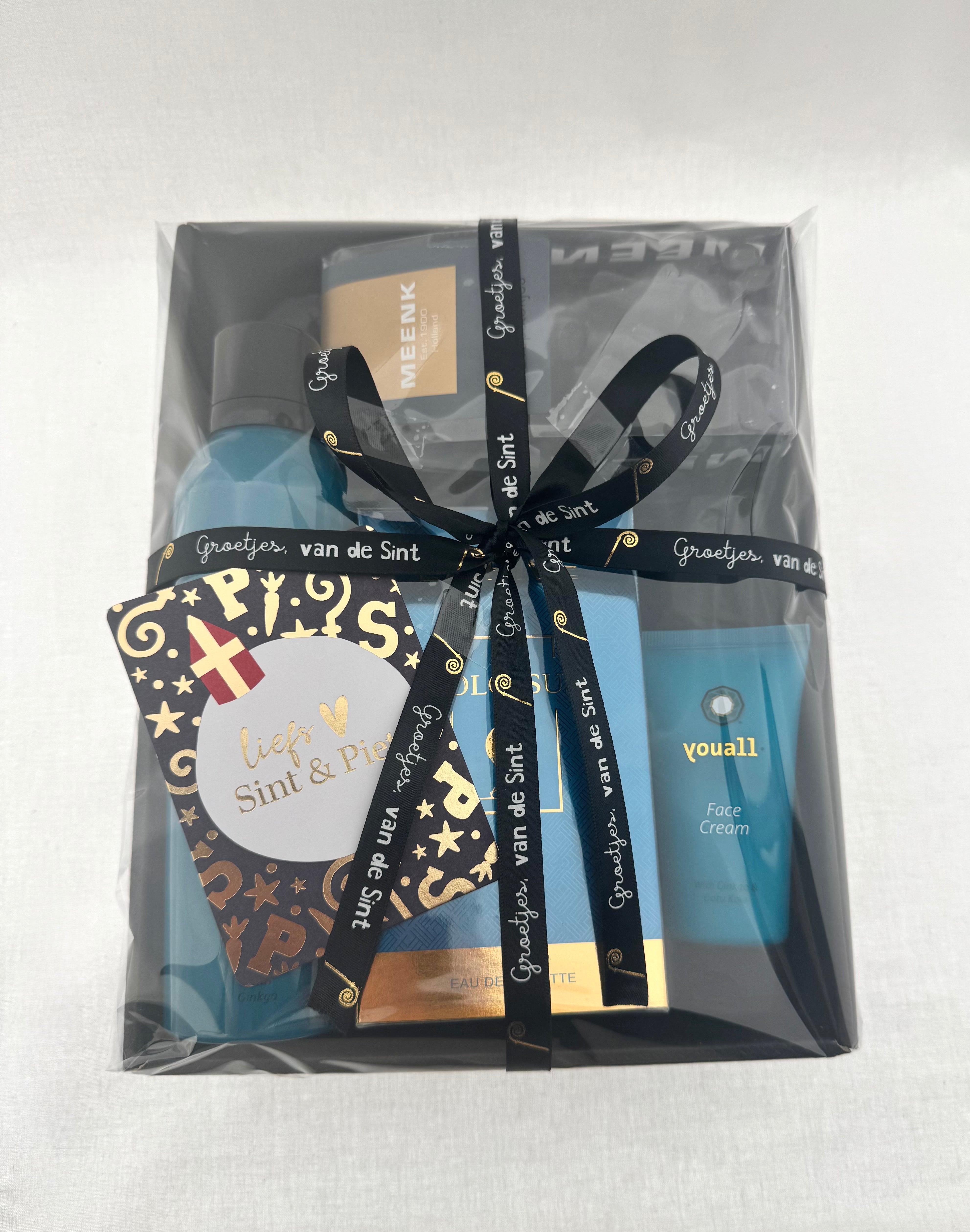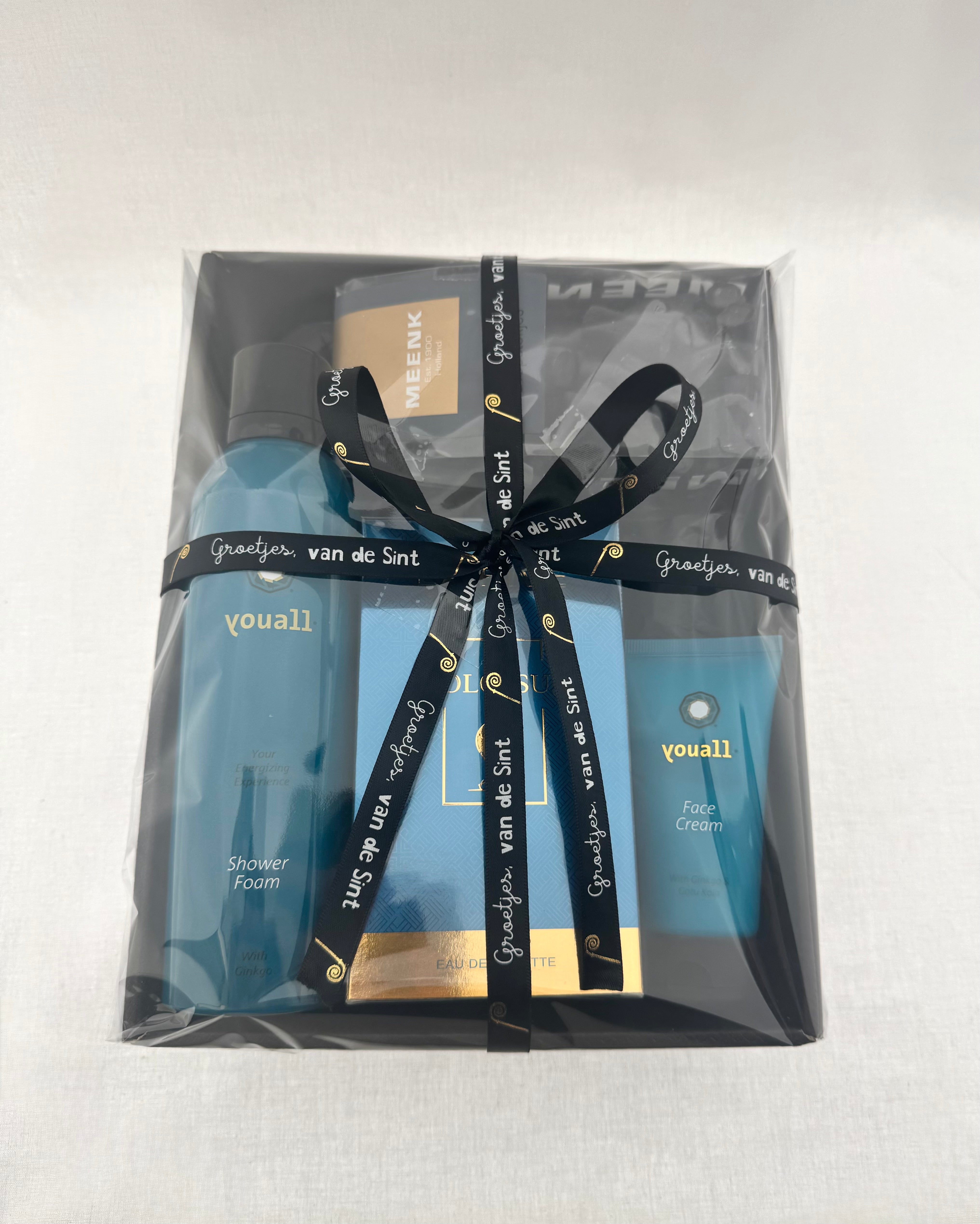 Verras hem deze sinterklaas met een stijlvol en luxe verzorgingspakket in elegante blauwtinten. Dit cadeau combineert verzorging, geur en een kleine lekkernij tot een perfect compleet sintgeschenk.