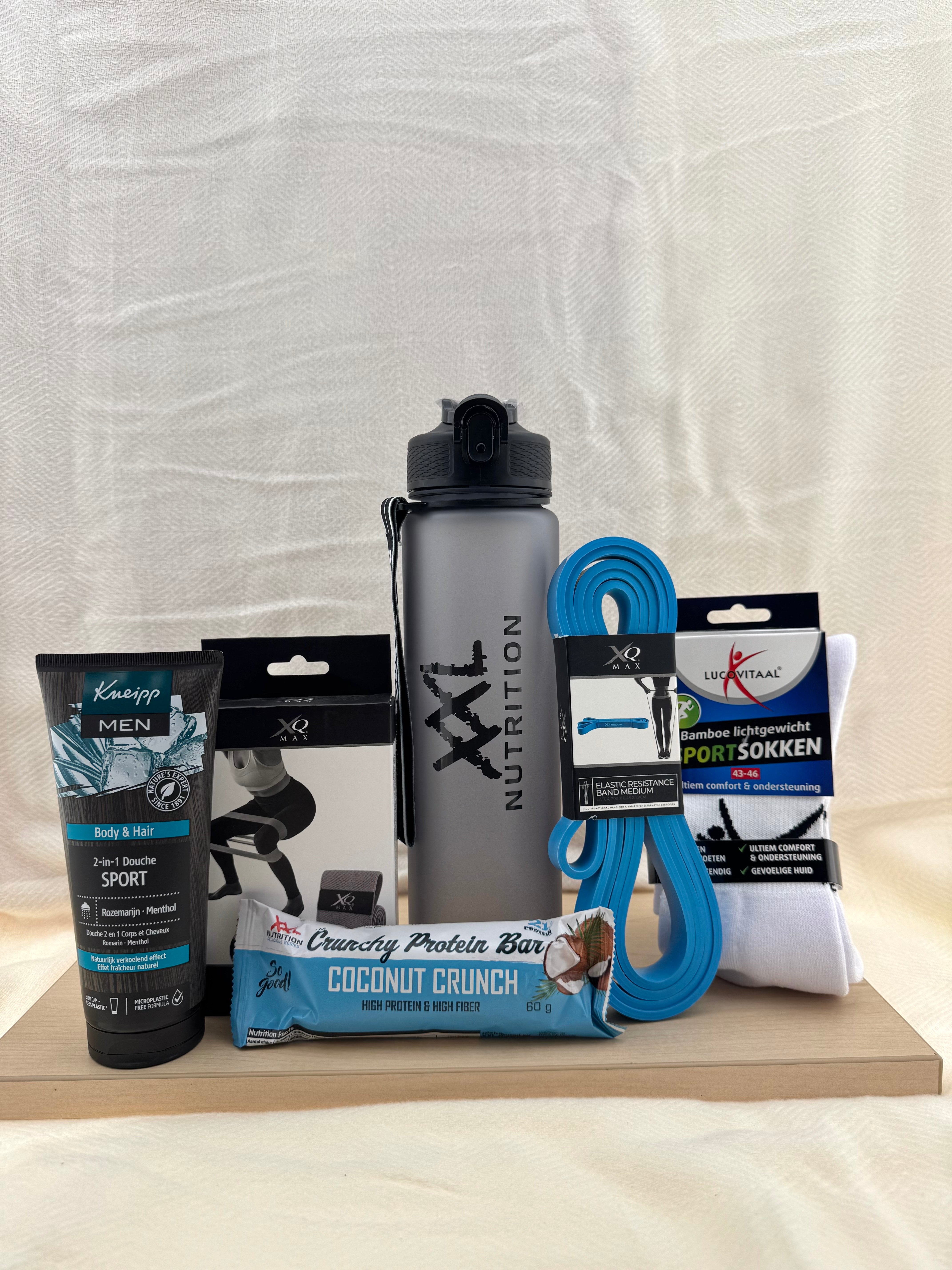 Geef je vader een motiverend duwtje in de rug met dit sportieve cadeaupakket vol energie, verzorging en comfort. Ideaal voor vaders die graag in beweging blijven — in de sportschool, buiten of gewoon thuis!