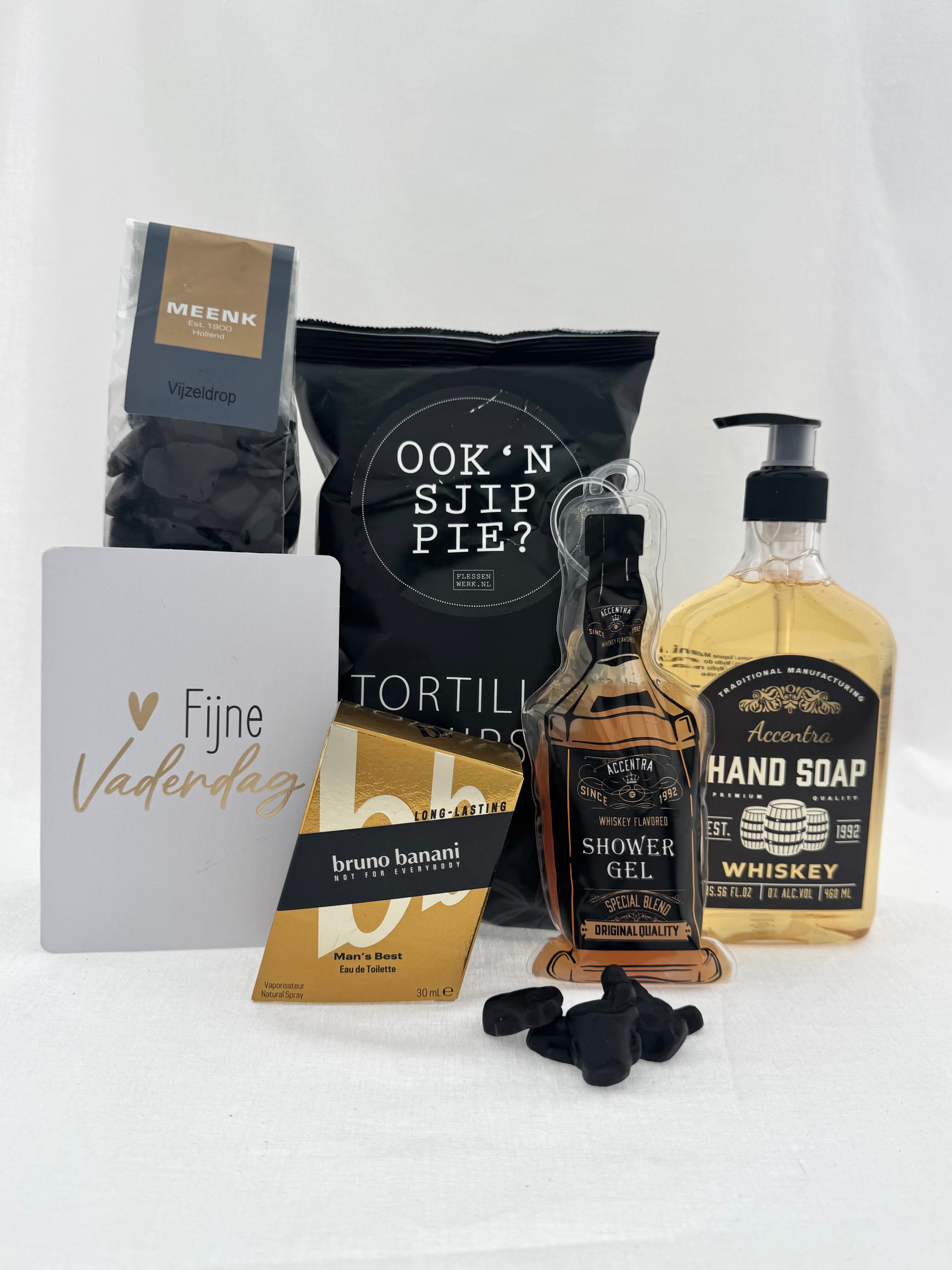 Een stoer en stijlvol cadeaupakket voor de moderne man. Dit pakket combineert een vleugje humor met een robuuste uitstraling!