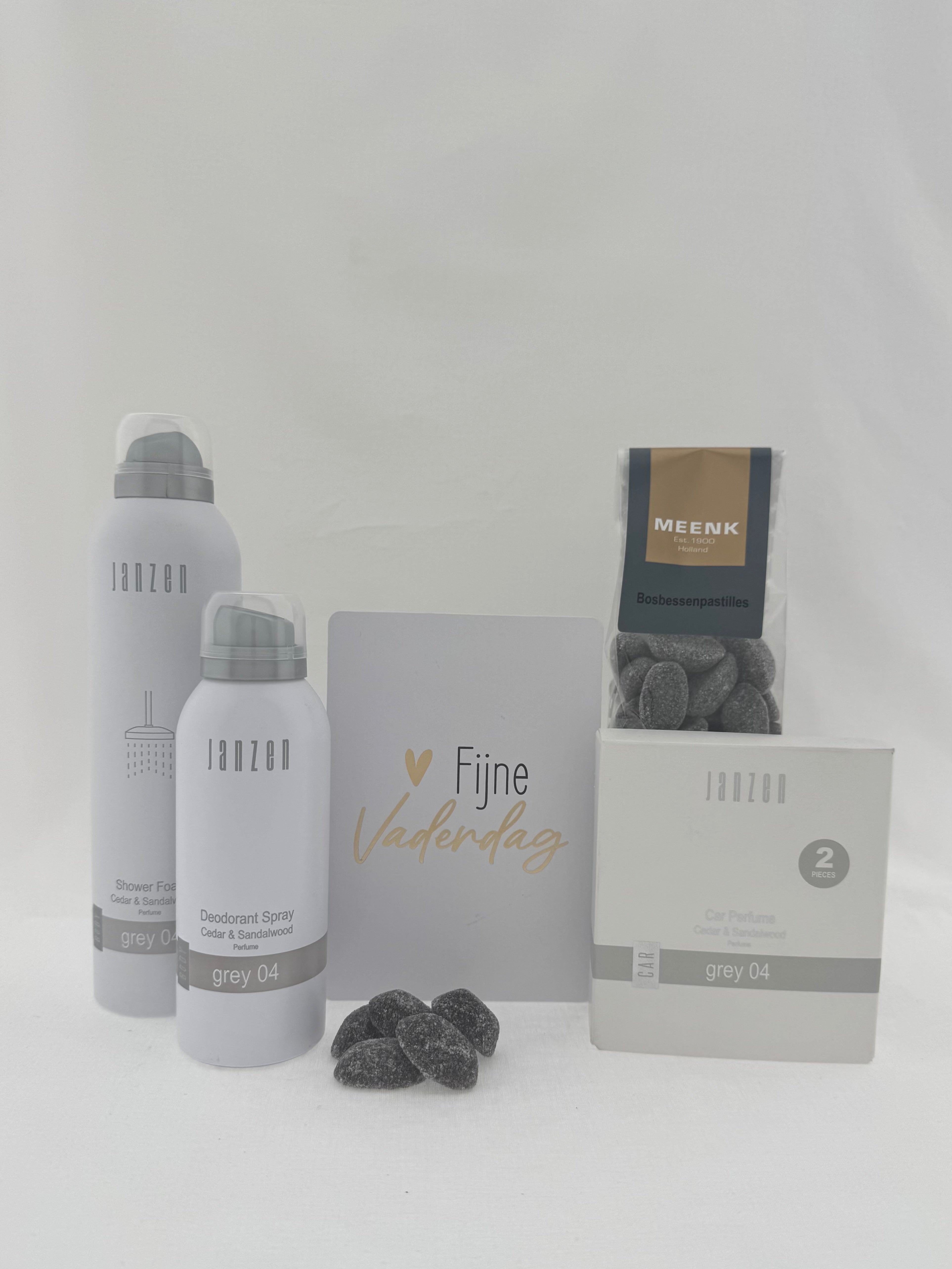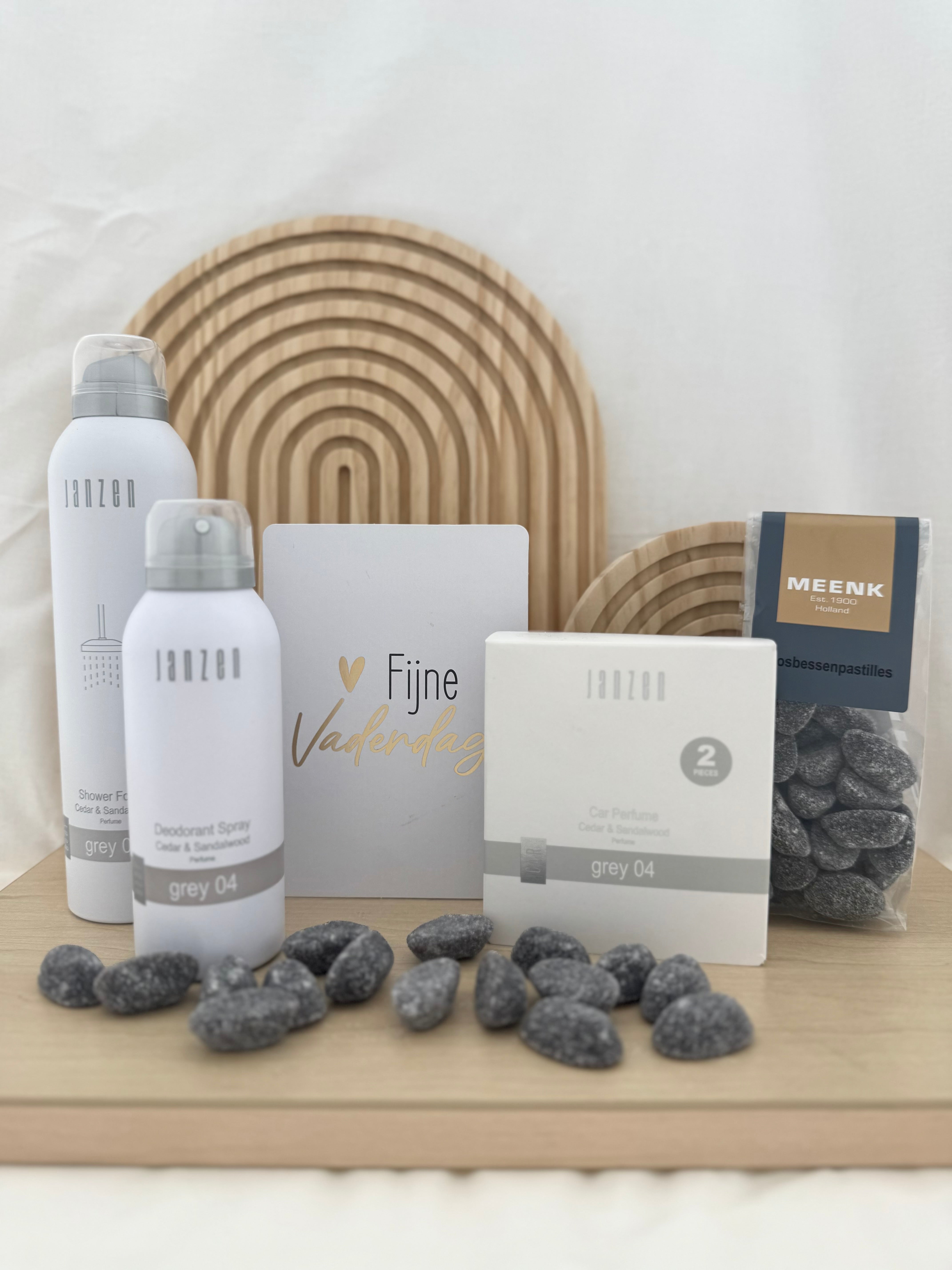 Een stijlvol en geurend cadeaupakket om papa te verrassen op vaderdag. Dit luxe verwenmoment is perfect samengesteld met producten van Janzen in de heerlijke geur Grey 04, Cedar & Sandalwood. Een warme, elegante geur met een vleugje frisheid die zorgt voor ontspanning en comfort.