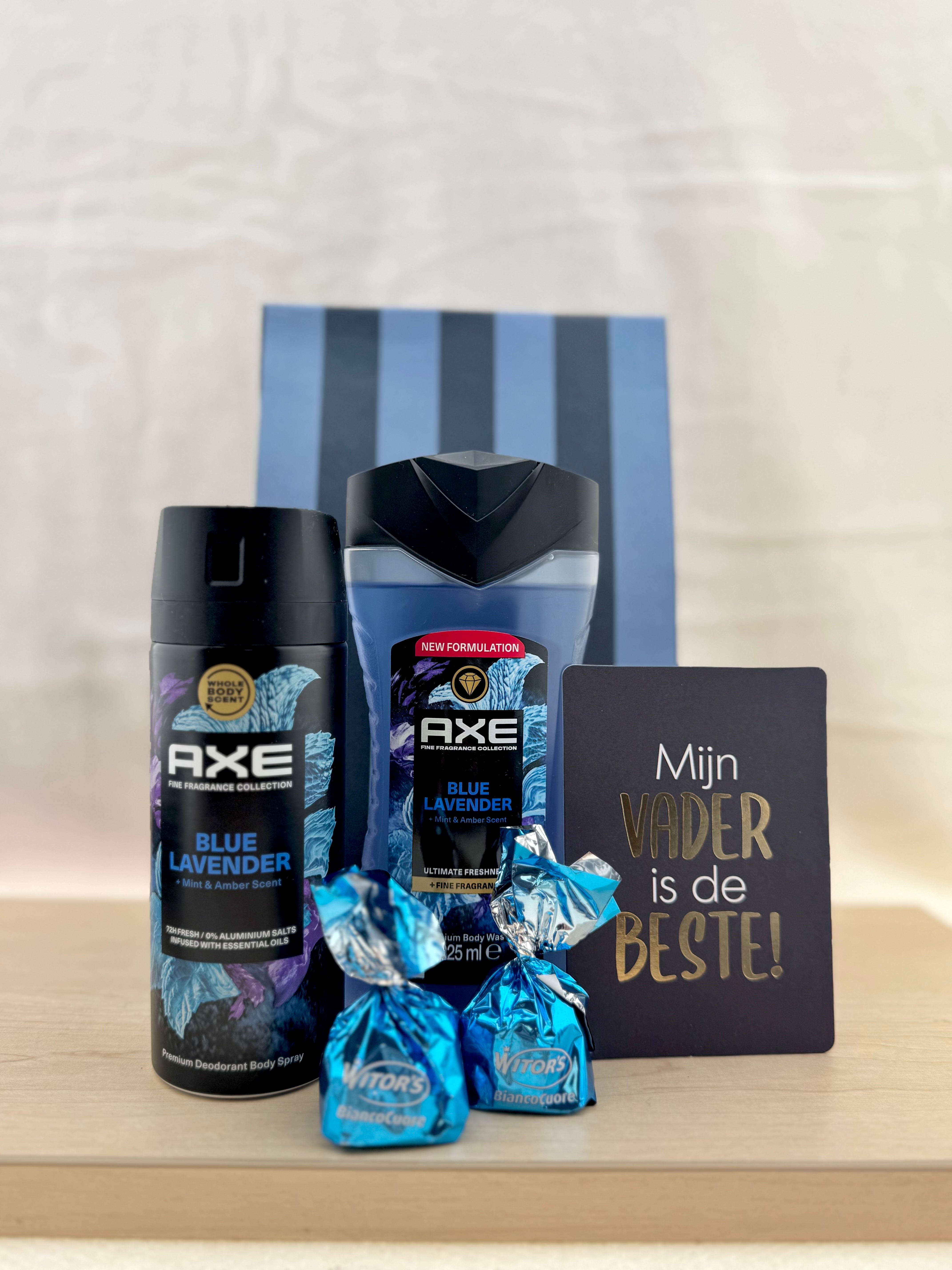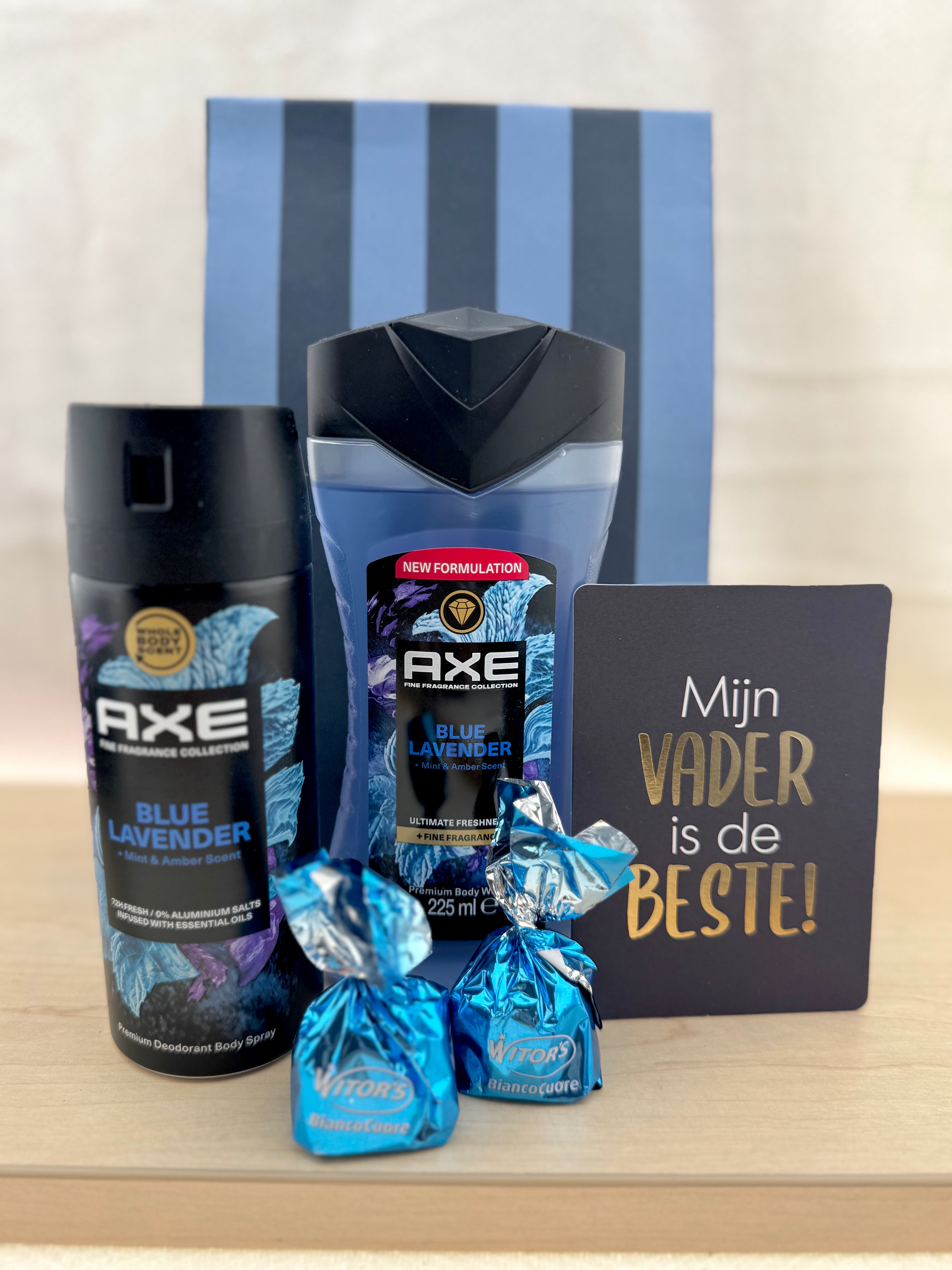 Laat jouw vader zich extra speciaal voelen met dit stoere en verfrissende cadeaupakket. De combinatie van de luxe AXE Blue Lavender lijn en een persoonlijke boodschap maakt dit een perfect Vaderdagcadeau voor de moderne man.