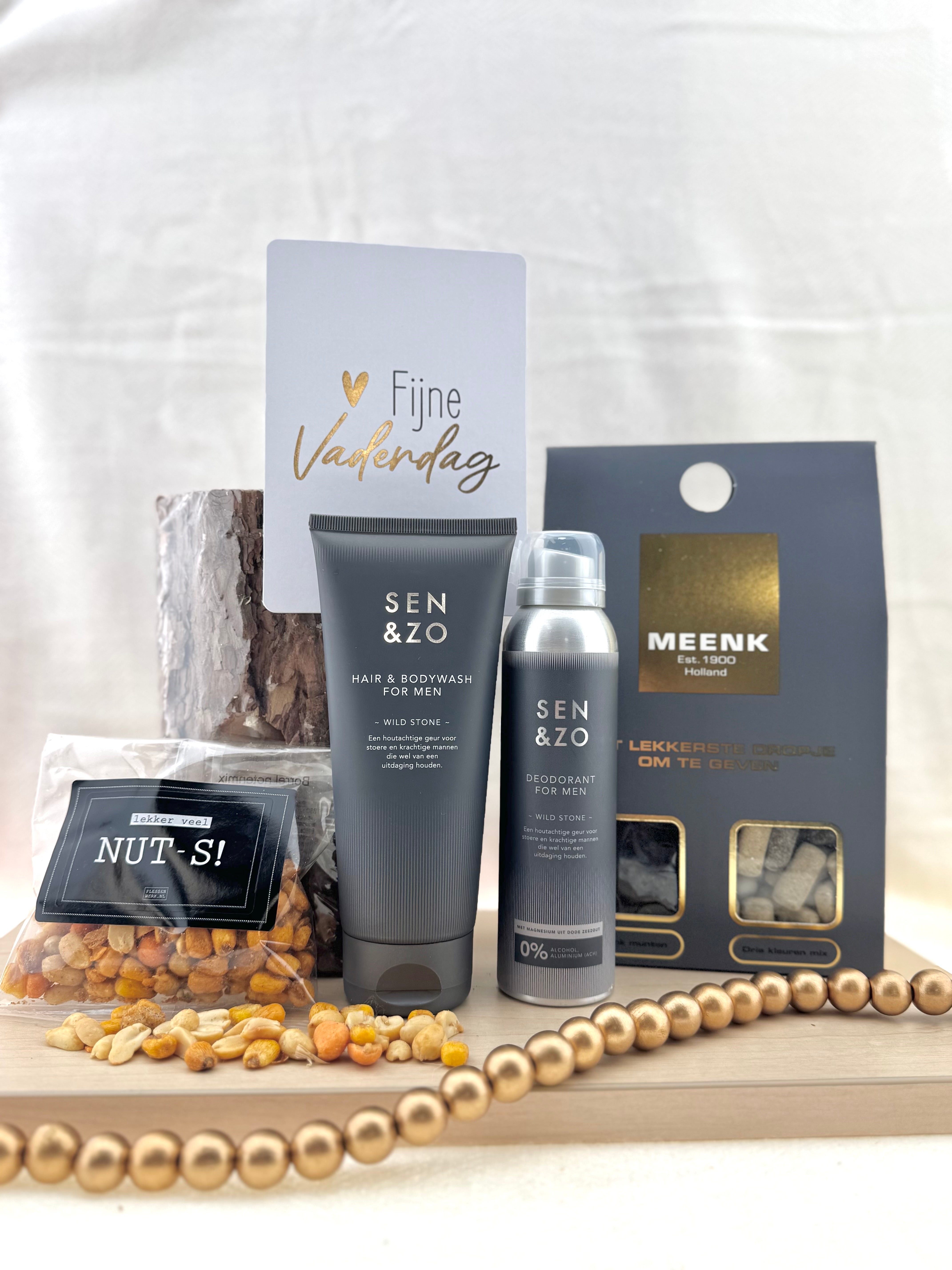 Dit pakket is met zorg samengesteld en sfeervol verpakt met natuurlijke en stoere elementen zoals houten details en goudkleurige accenten. Een prachtig cadeau dat in de smaak valt bij iedere vader die houdt van een moment voor zichzelf.
