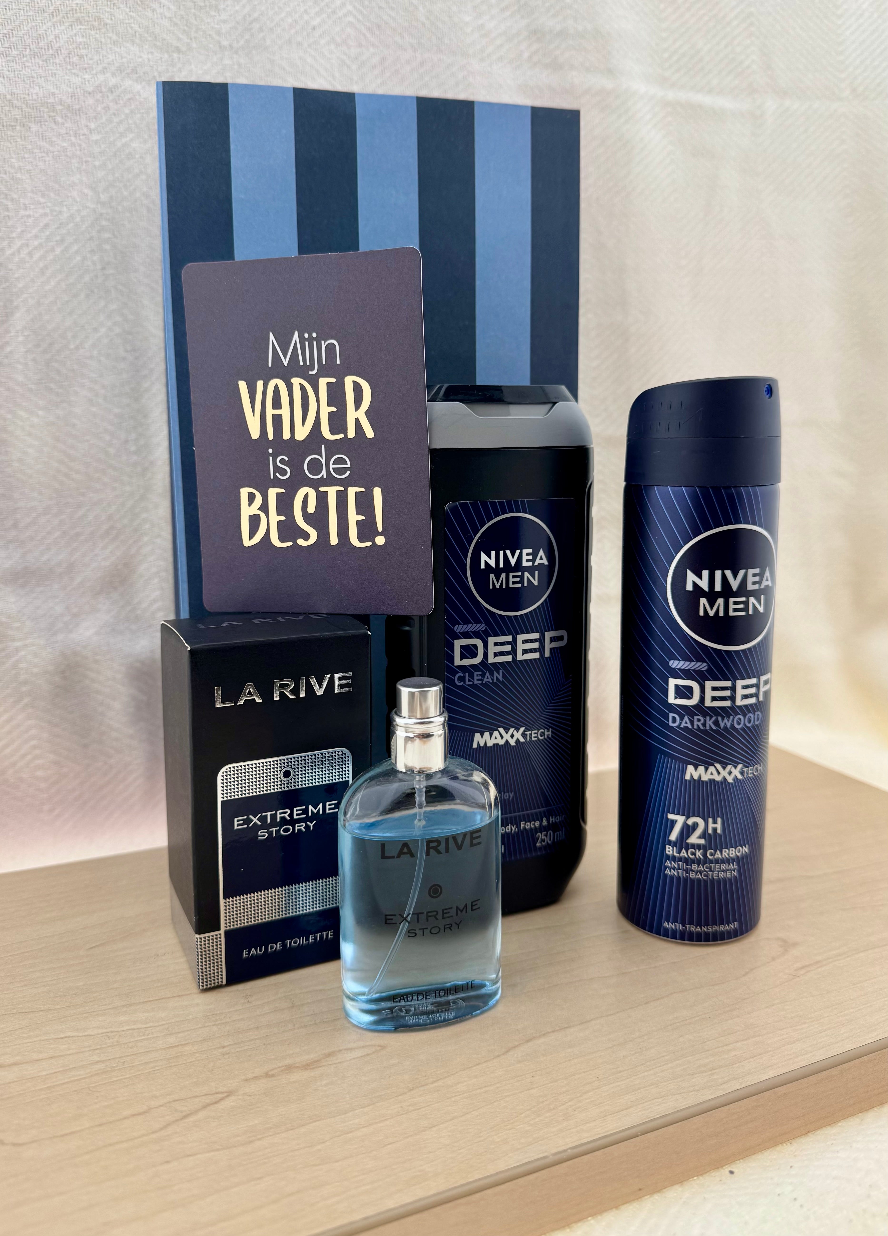 Een stijlvol en compleet verzorgingspakket speciaal samengesteld voor de beste vader! Dit pakket bevat alles wat hij nodig heeft om zich fris en zelfverzekerd te voelen, verpakt in een elegante presentatie.