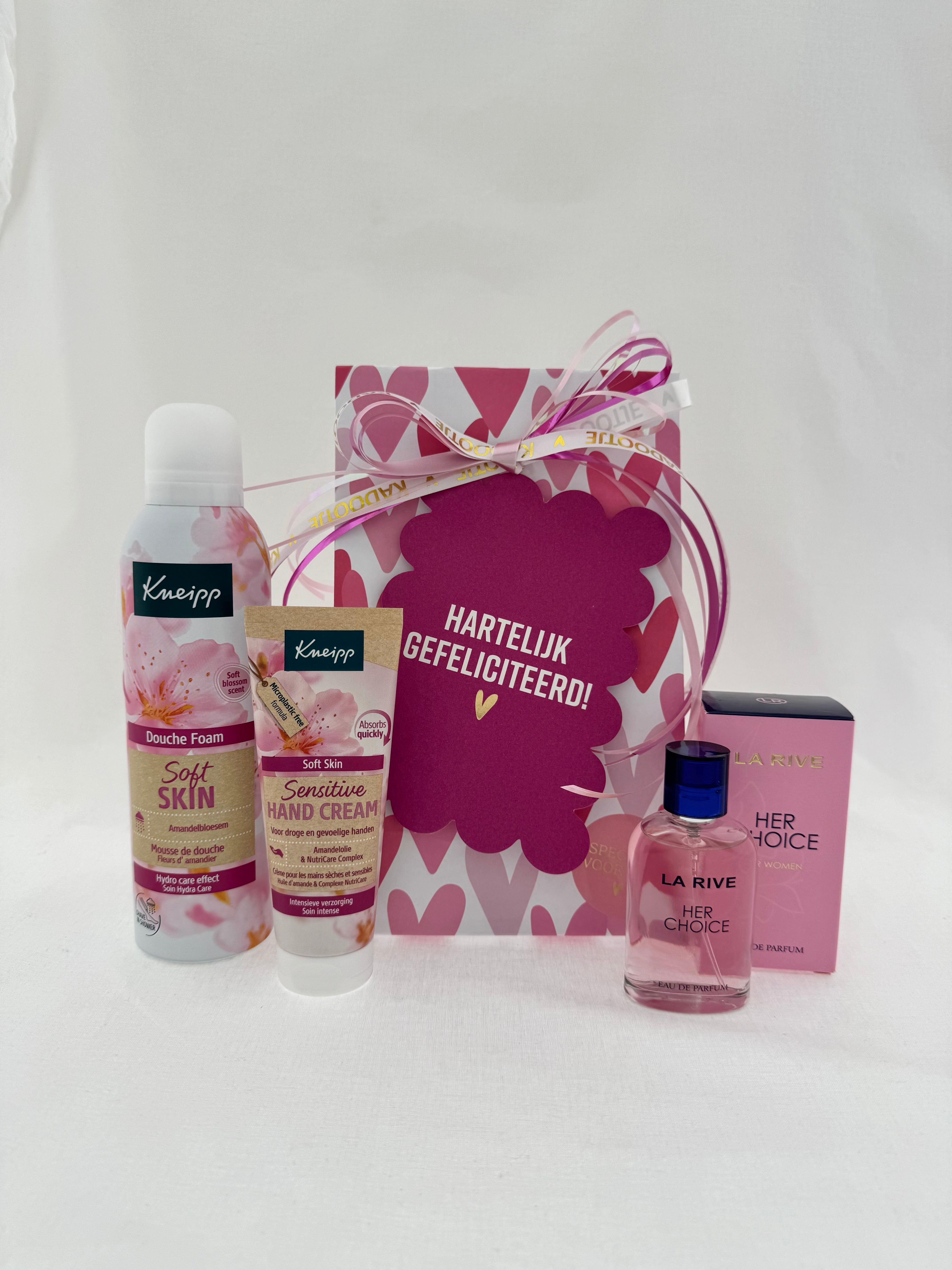 Verras iemand met een compleet wellness cadeau vol heerlijke geuren en verzorging. Dit feestelijke pakket combineert luxe verzorgingsproducten met een elegante parfum, verpakt in een vrolijke geschenkdoos.