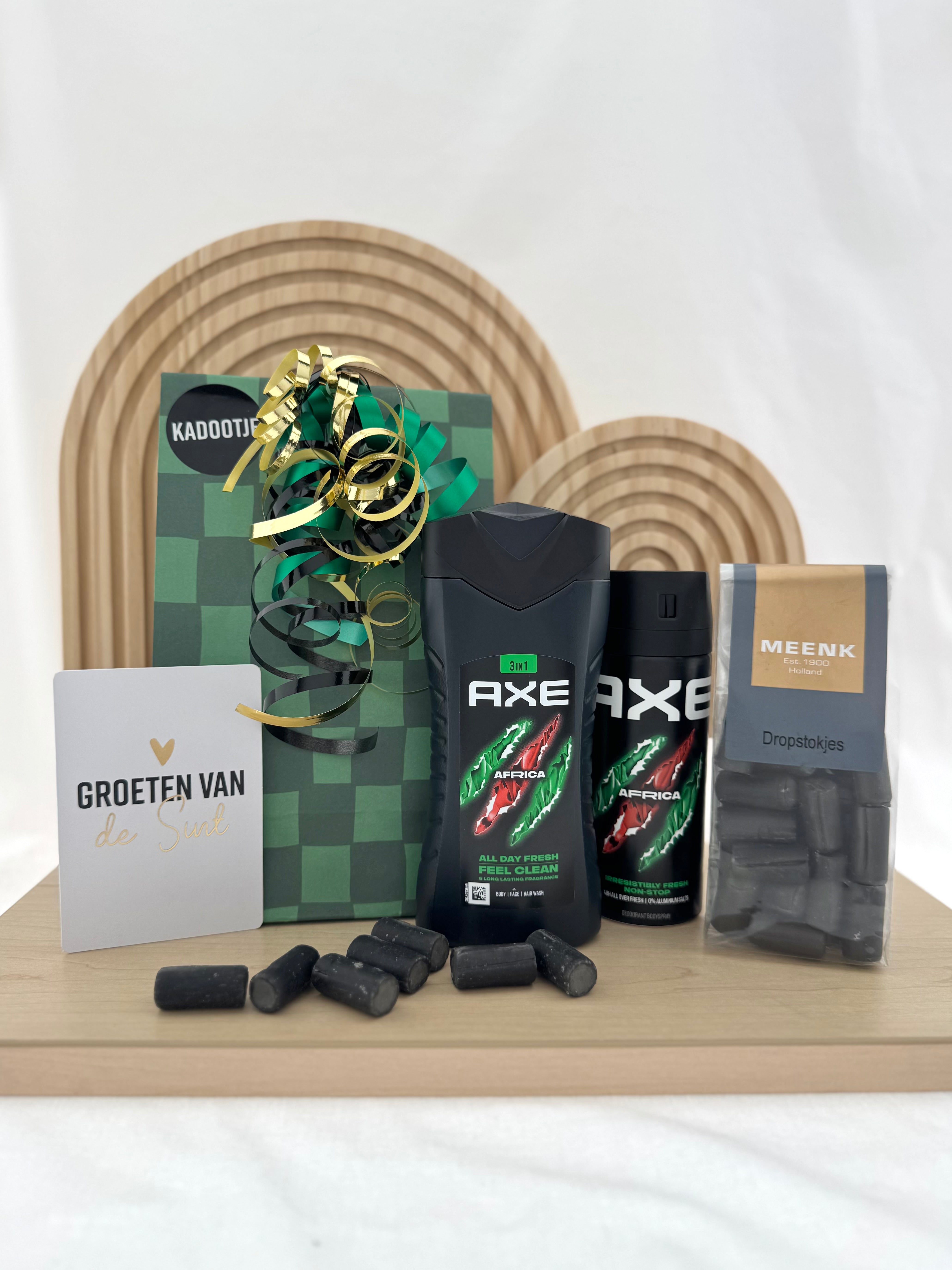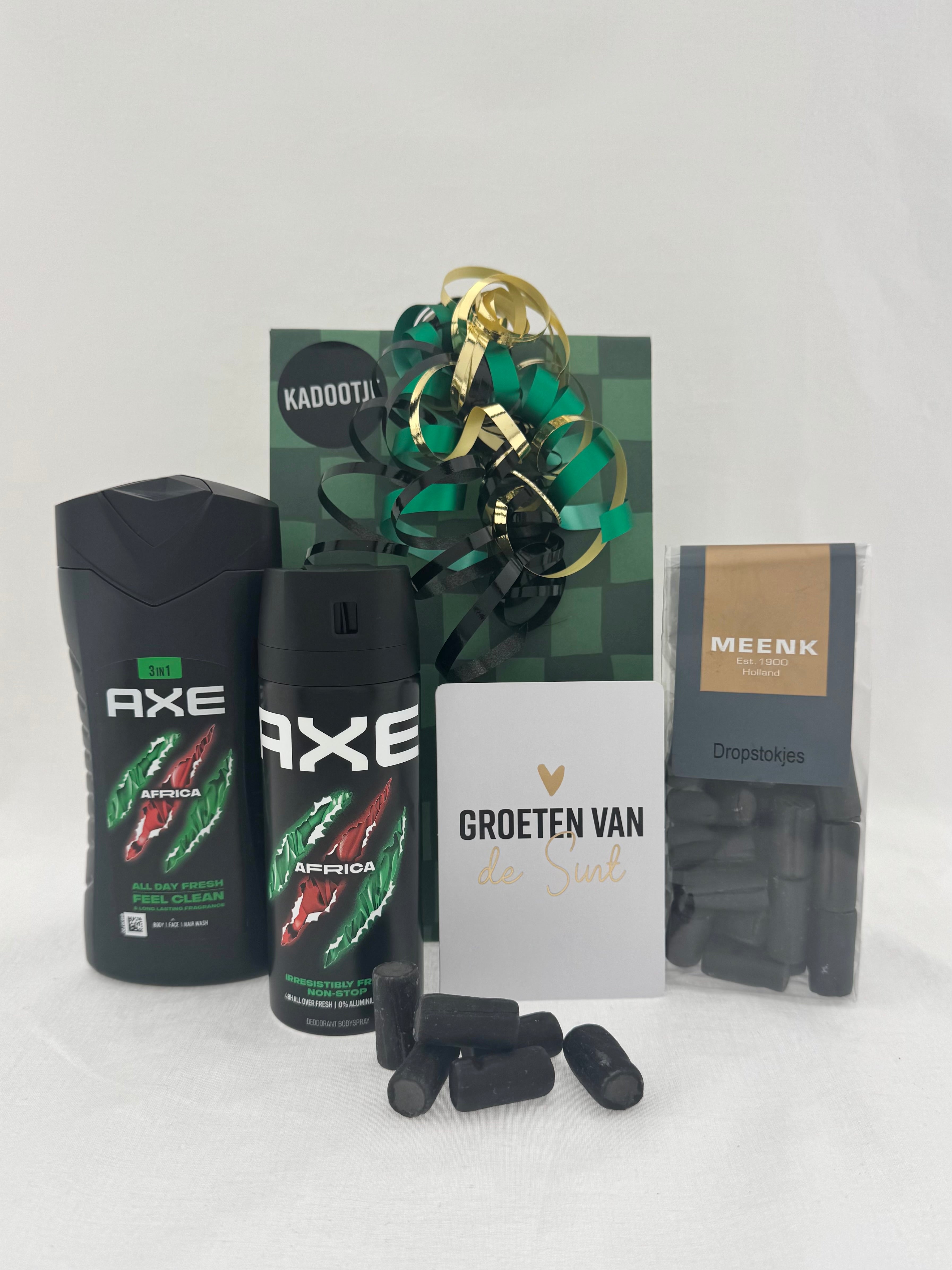 Een stoer en lekker verzorgingspakket, perfect als kerstcadeau voor hem! Dit pakket combineert verfrissende verzorging met een typisch Hollands snoepmoment.